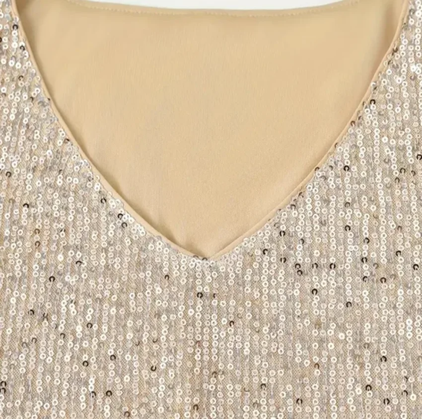 Details: Turn heads. Steal spotlights. Own the night. This isn’t just a top – it’s a declaration. With a plunging V-neckline and a cascade of shimmering sequins, this sleeveless stunner is designed to dazzle from every angle. Whether you’re dancing under club lights or commanding attention at a rooftop soirée, it delivers unapologetic glamour with a modern edge. Available in seven electrifying shades – from classic silver and sultry black to radiant gold, dreamy white, flirty pink, and envy-inducing green – each color tells a different story, but all say the same thing: you’re unforgettable.