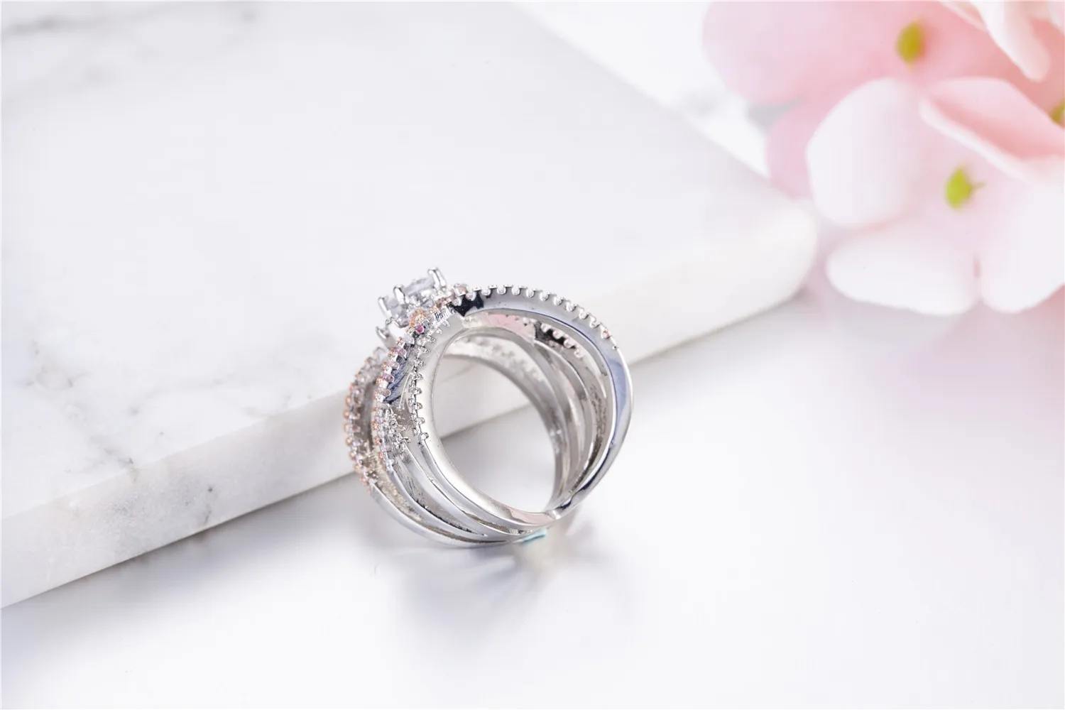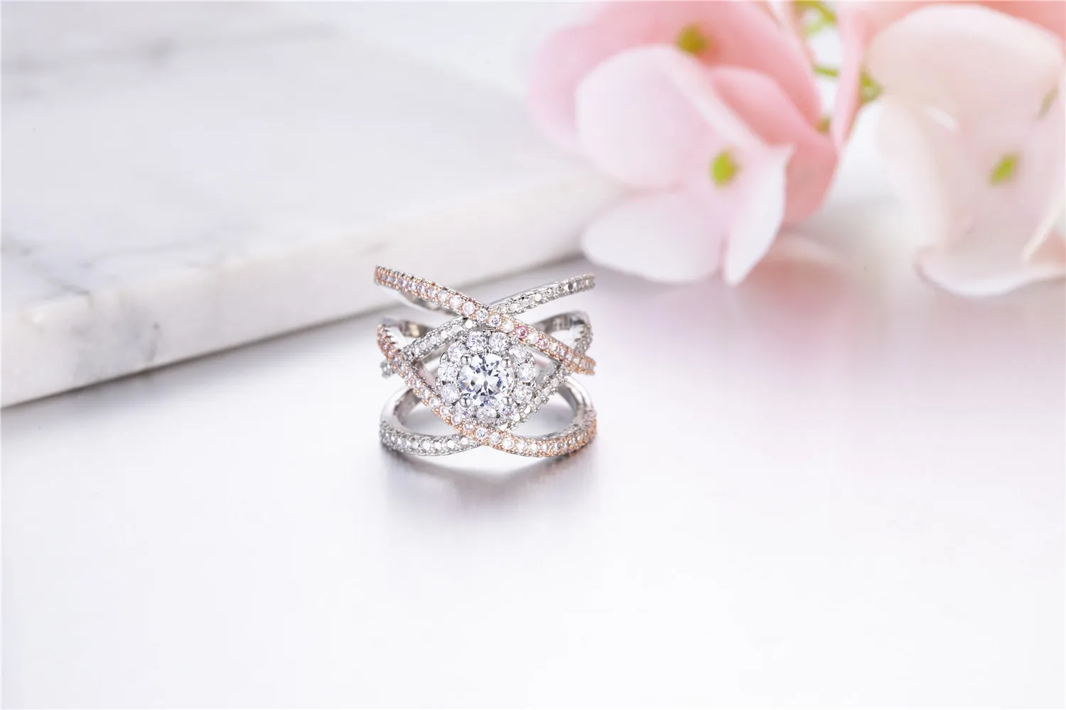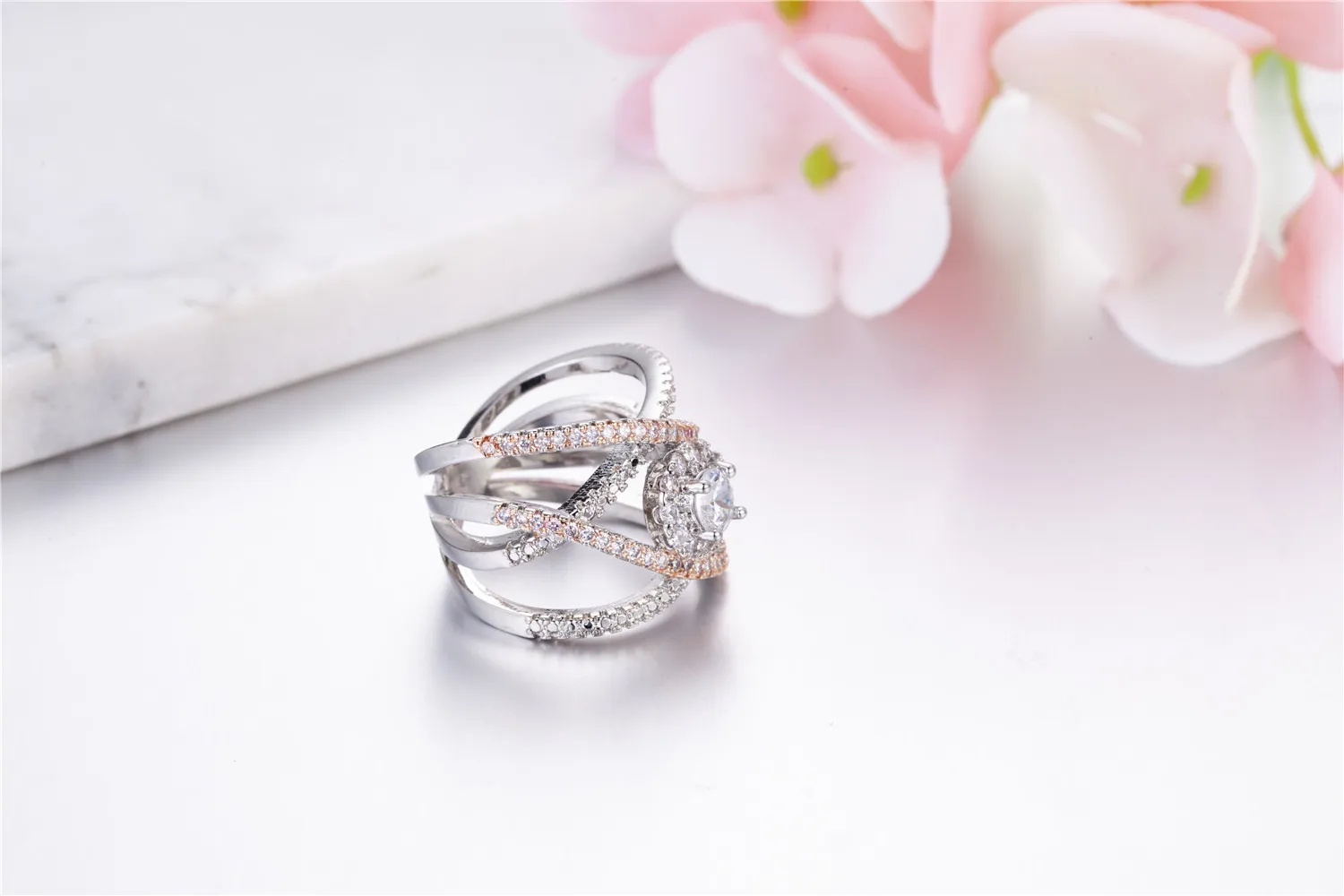 Silver Rose Gold Color Cross Engagement Ring