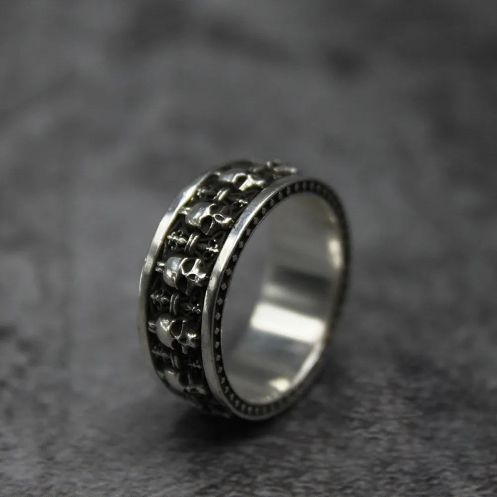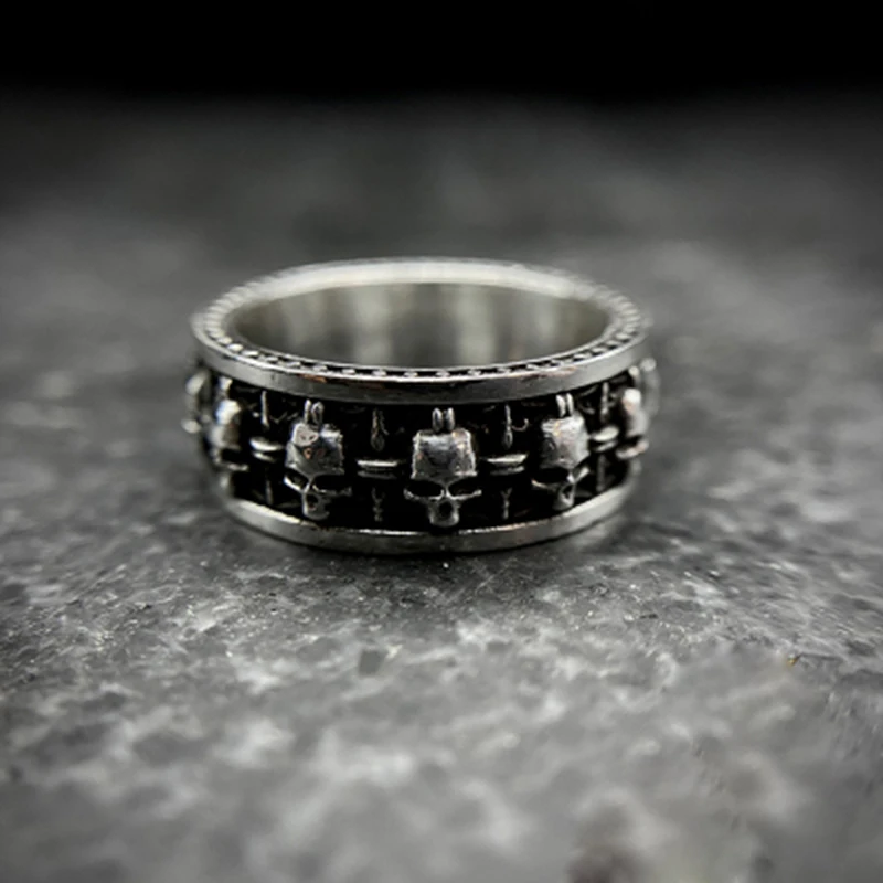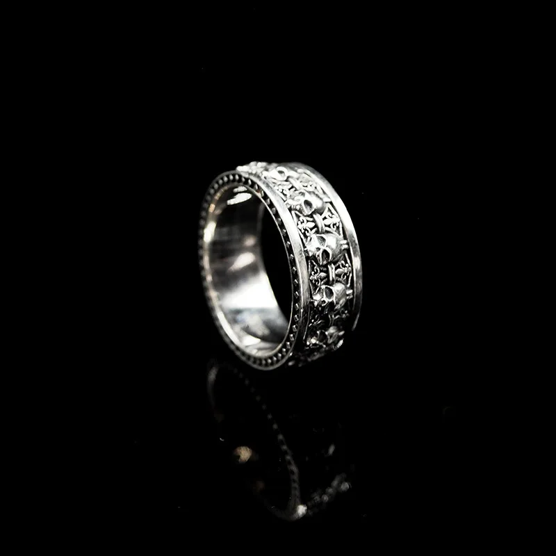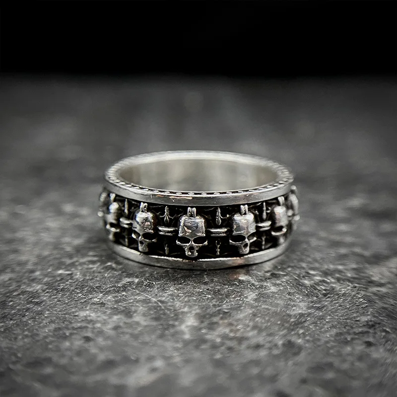 Details: Add a touch of rugged sophistication to your style with this Gothic Skulls Skeleton Heads 316L Stainless Steel Open Ring. This bold piece features an intricate design of interconnected skulls, crafted from 316L stainless steel. The 316L stainless steel construction ensures durability and a lasting shine, while the detailed skull motifs exude a dark and edgy aesthetic. The open ring design adds a touch of modern sophistication. Perfect for those who appreciate unique and alternative fashion, this ring is a testament to timeless elegance and impeccable craftsmanship.
