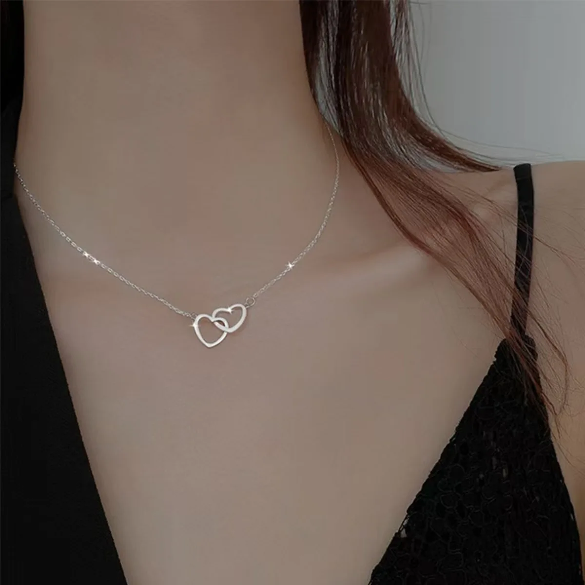 Details: Two hearts, delicately interlocked, form the centerpiece of this elegant necklace—each curve a whisper of devotion, each link a promise kept. Available in luminous silver or warm gold, the pendant rests on a sleek matching chain that catches the light with every movement. The interlocking hearts represent unity, trust, and the beautiful complexity of soul-level connection. Whether gifted to a partner, a best friend, or worn as a personal reminder of love’s enduring power, this piece speaks in the language of emotion.