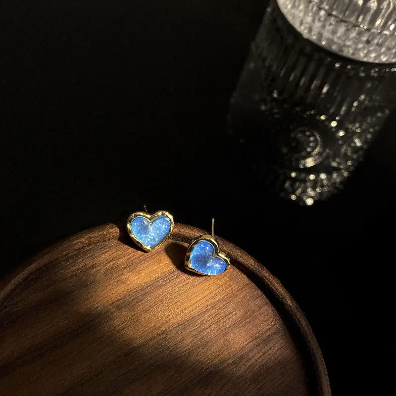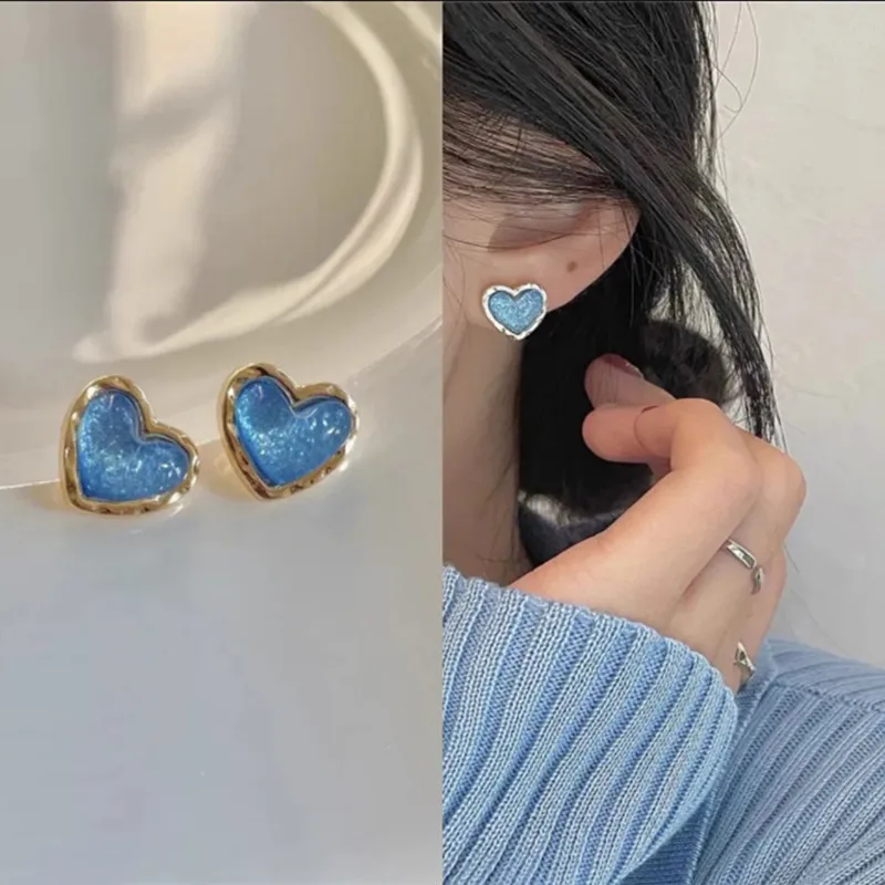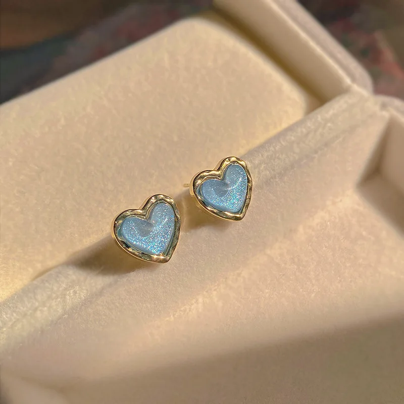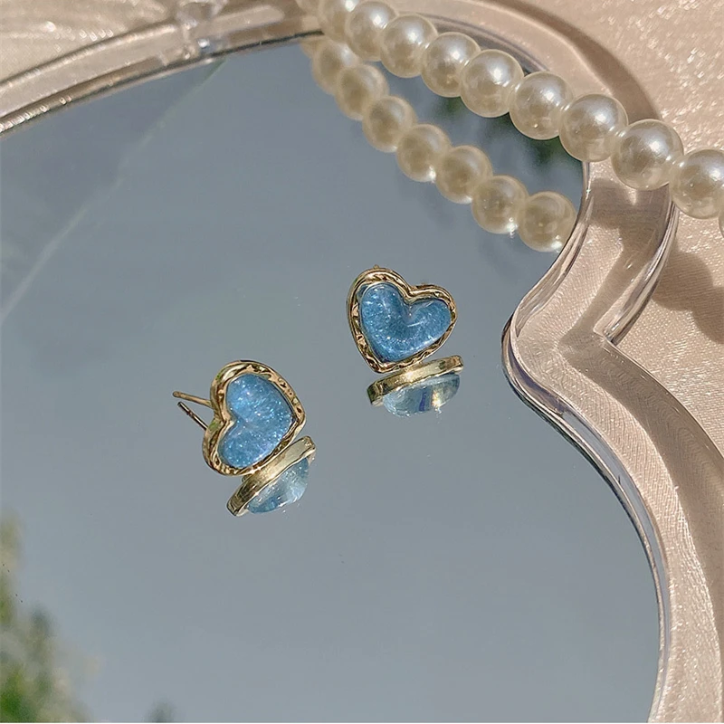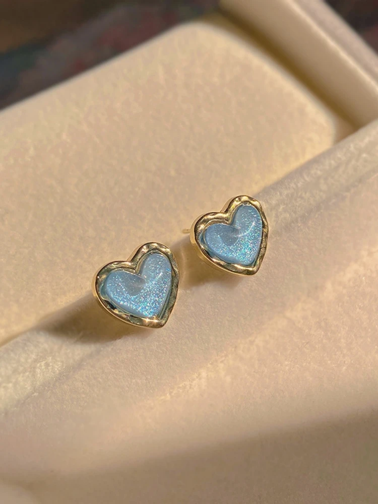 Sparkling Sky Blue Resin Heart Stud Earrings