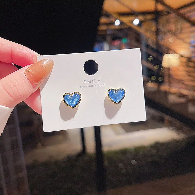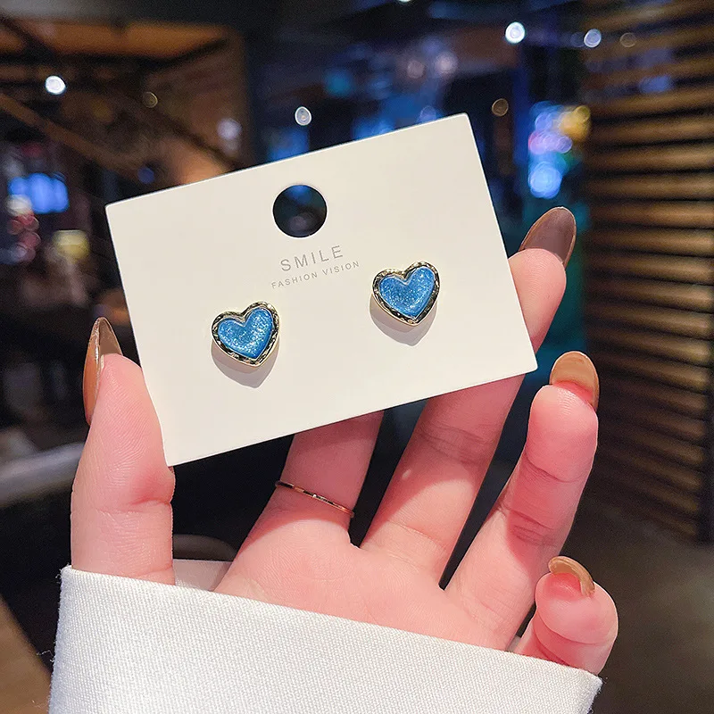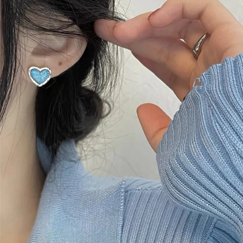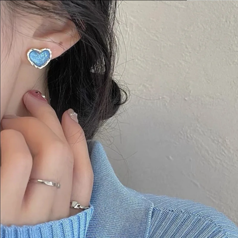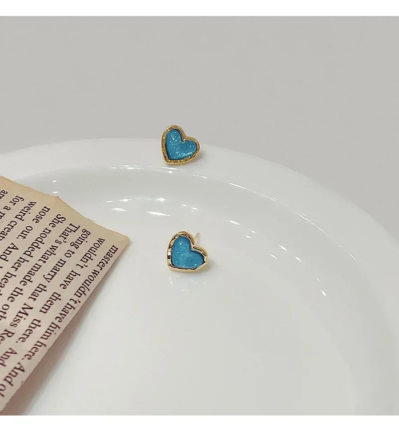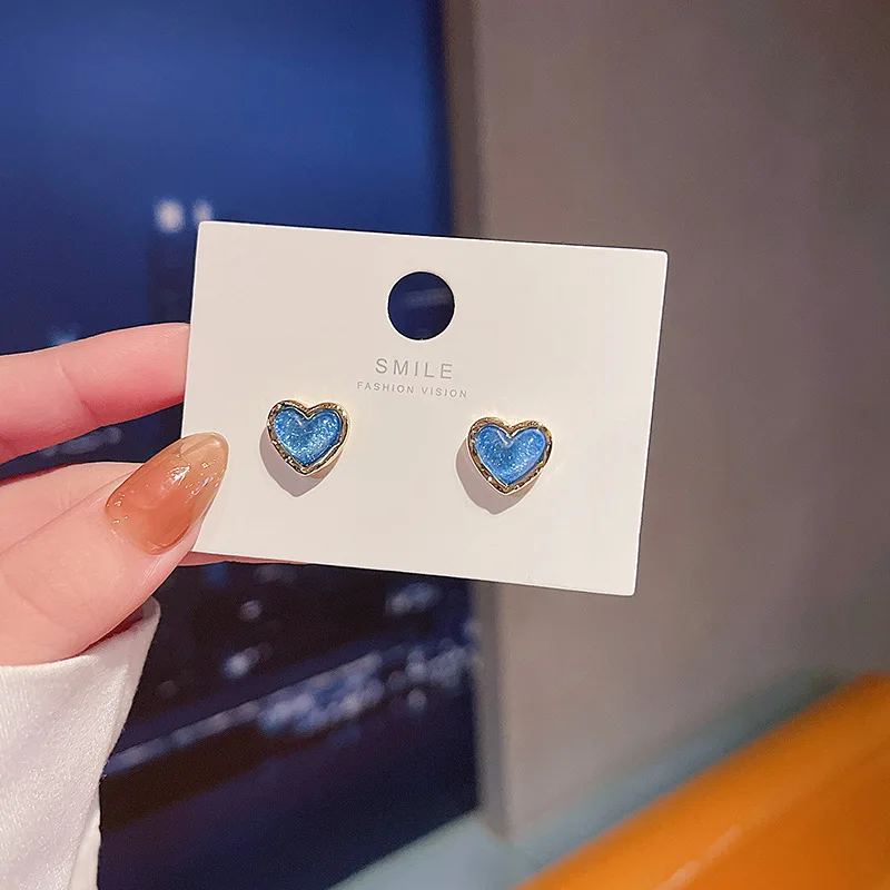 Sparkling Sky Blue Resin Heart Stud Earrings