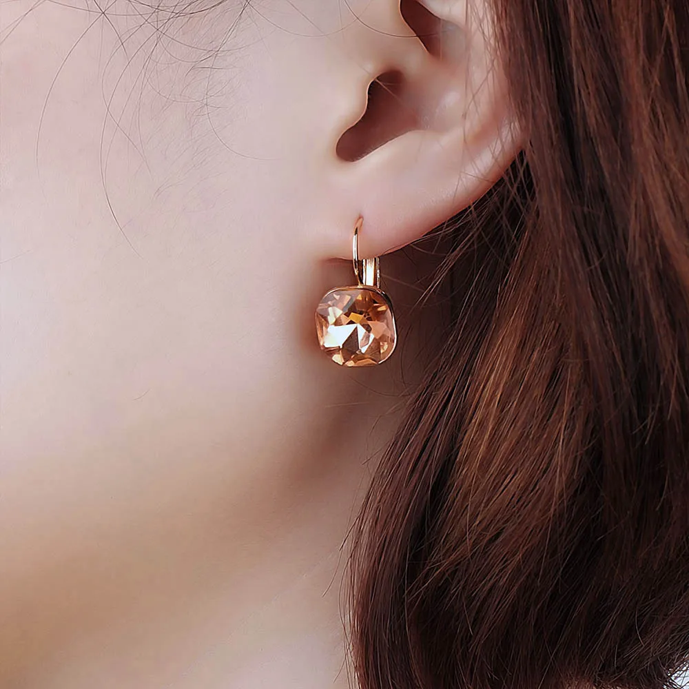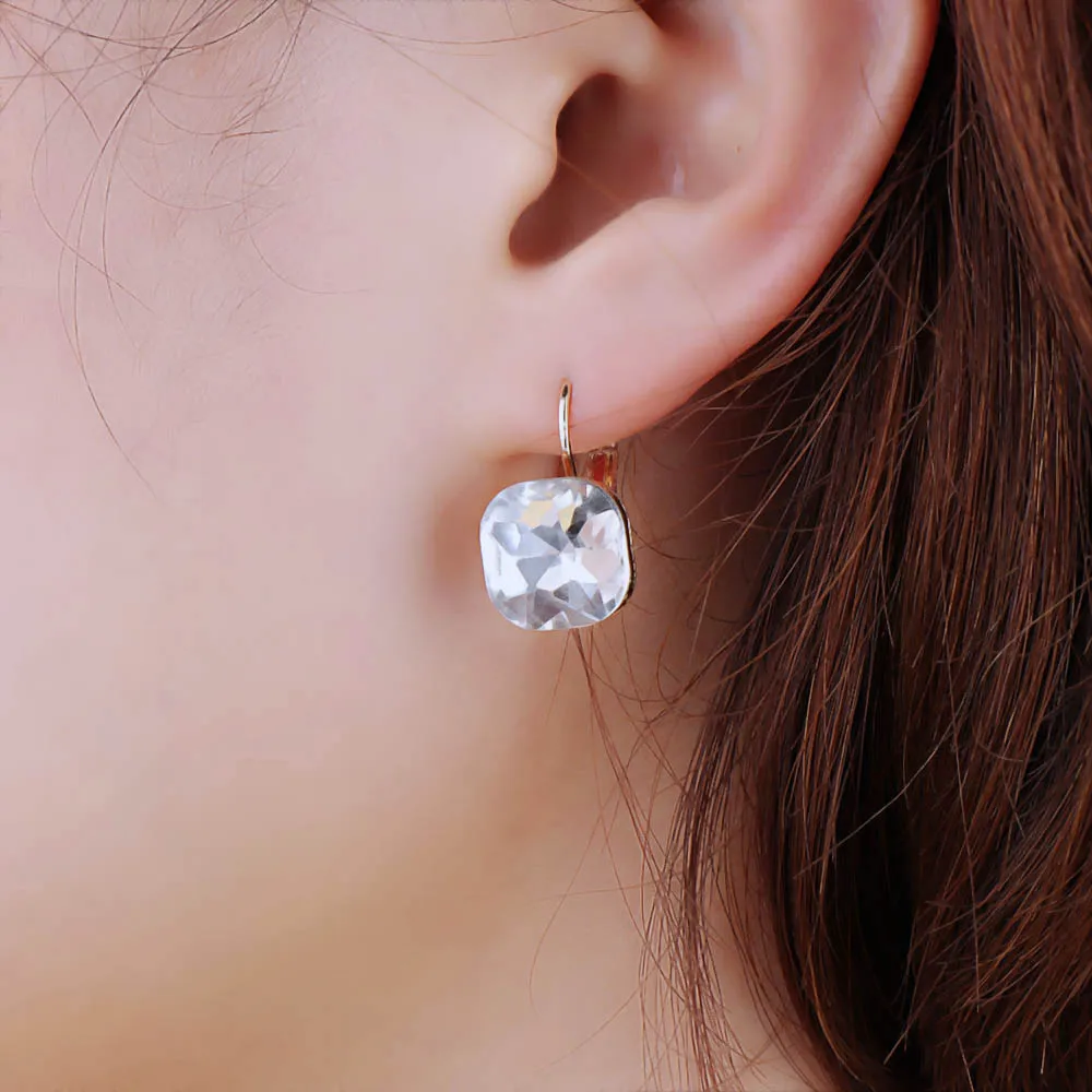 I love these earrings! They are very high quality and look very expensive. The gold colour is very nice and they do not look fake. They have a nice firm clip. The stone is very sparkly and clear. They do not make my ears itchy. The shipping was very fast and the price, well, so affordable. I will be buying again. Very fast shipping. Love, love, love them.