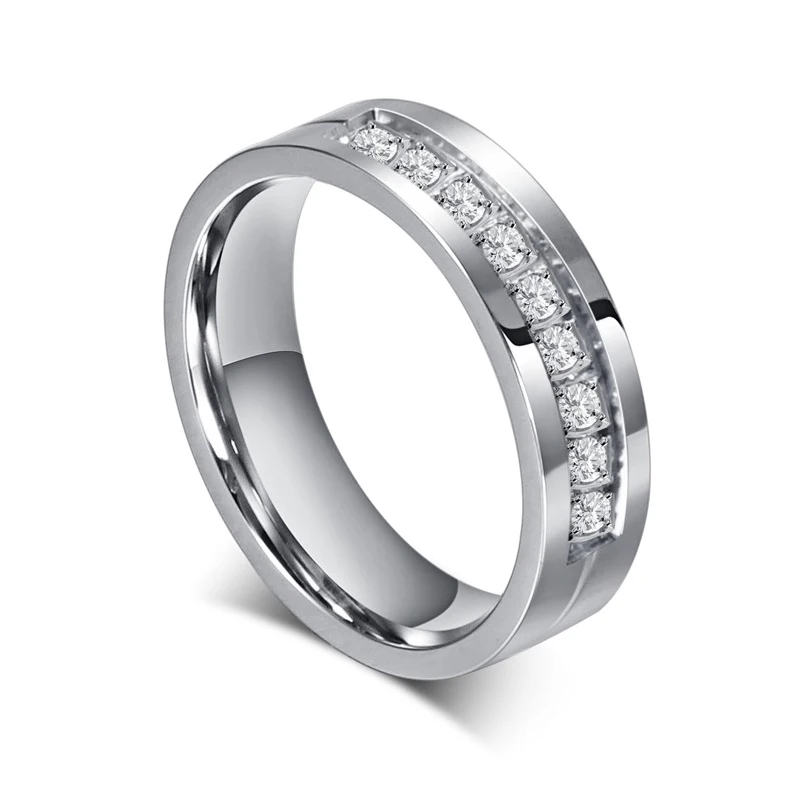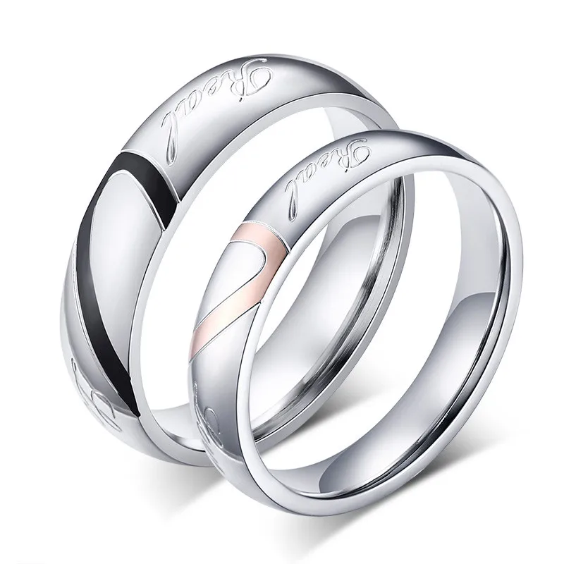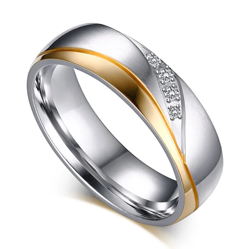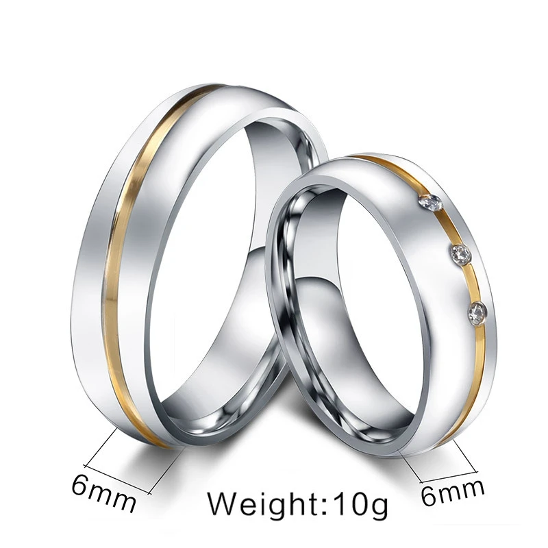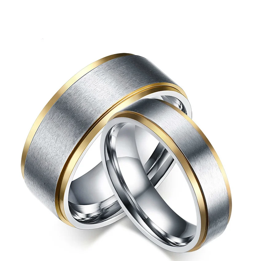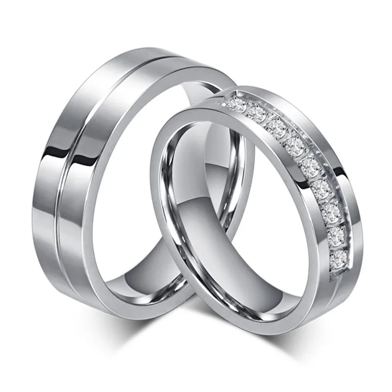Details: These rings are a symbol of unwavering commitment, crafted from stainless steel to withstand the test of time, just like true love. Adorned with the brilliance of cubic zirconia, each ring reflects the radiant light of two souls united in harmony. With their sleek design and lustrous shine, these bands are a testament to the beauty of a bond that grows stronger every day. These rings capture the essence of a promise that knows no bounds, an eternal connection sealed with a sparkling emblem of affection. Each pair in this collection is designed to celebrate the journey of love, from the first flutter of romance to the enduring echoes of a shared lifetime. Whether as a symbol of engagement or a reaffirmation of vows, these rings are a tribute to the love that inspires us all.
