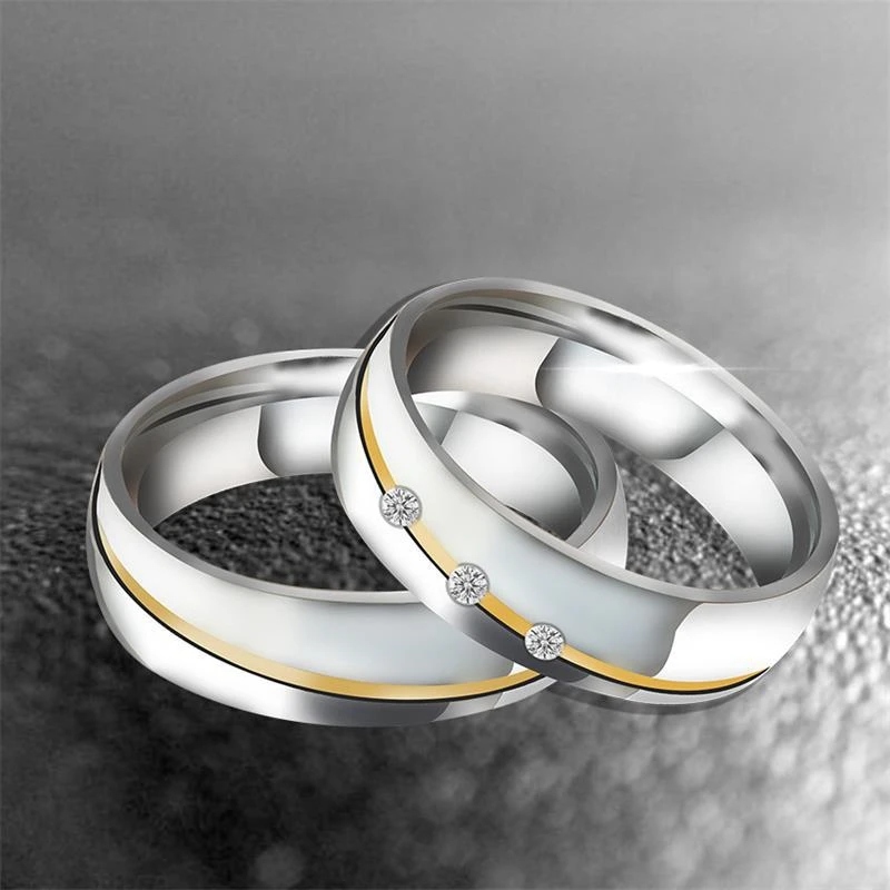 Stainless Steel Cubic Zirconia Couple Wedding Engagement Rings Bands
