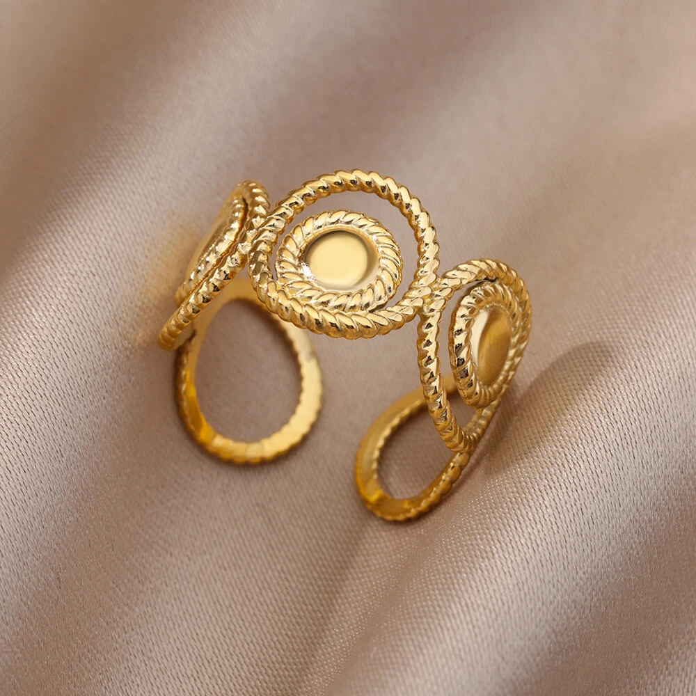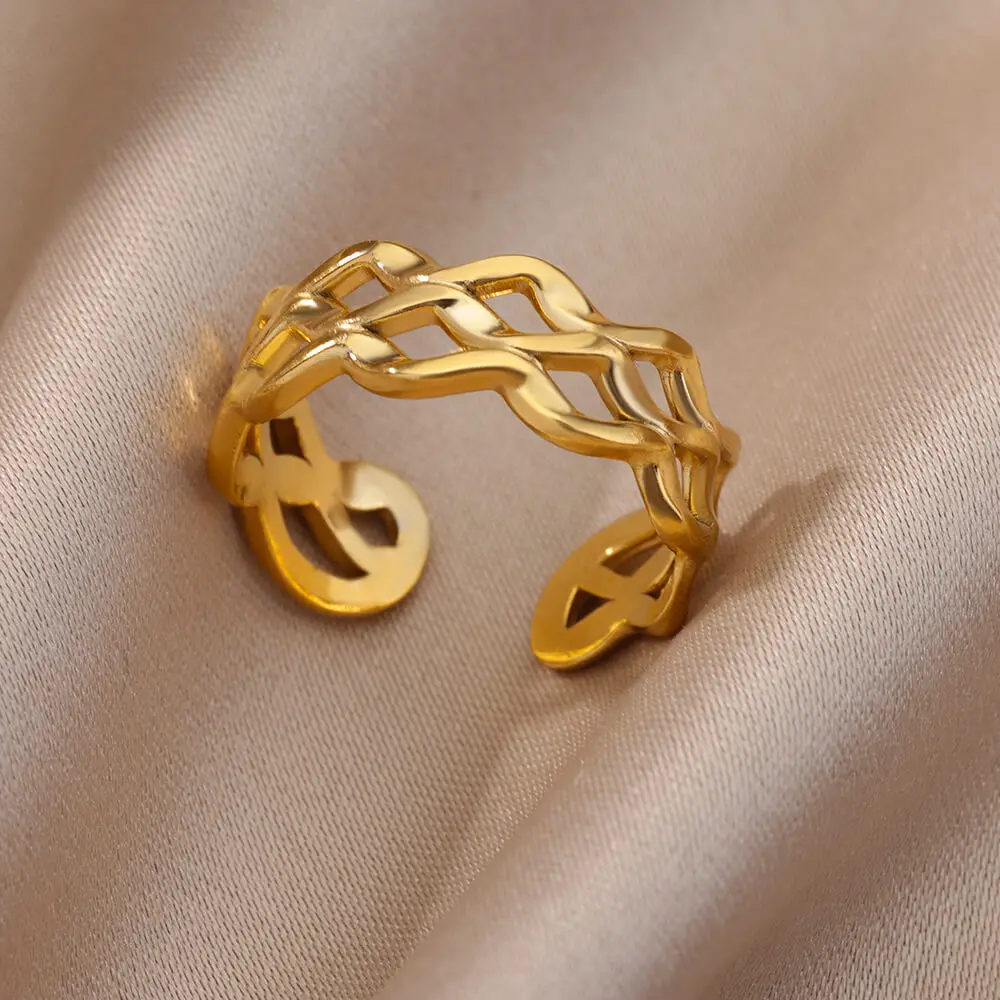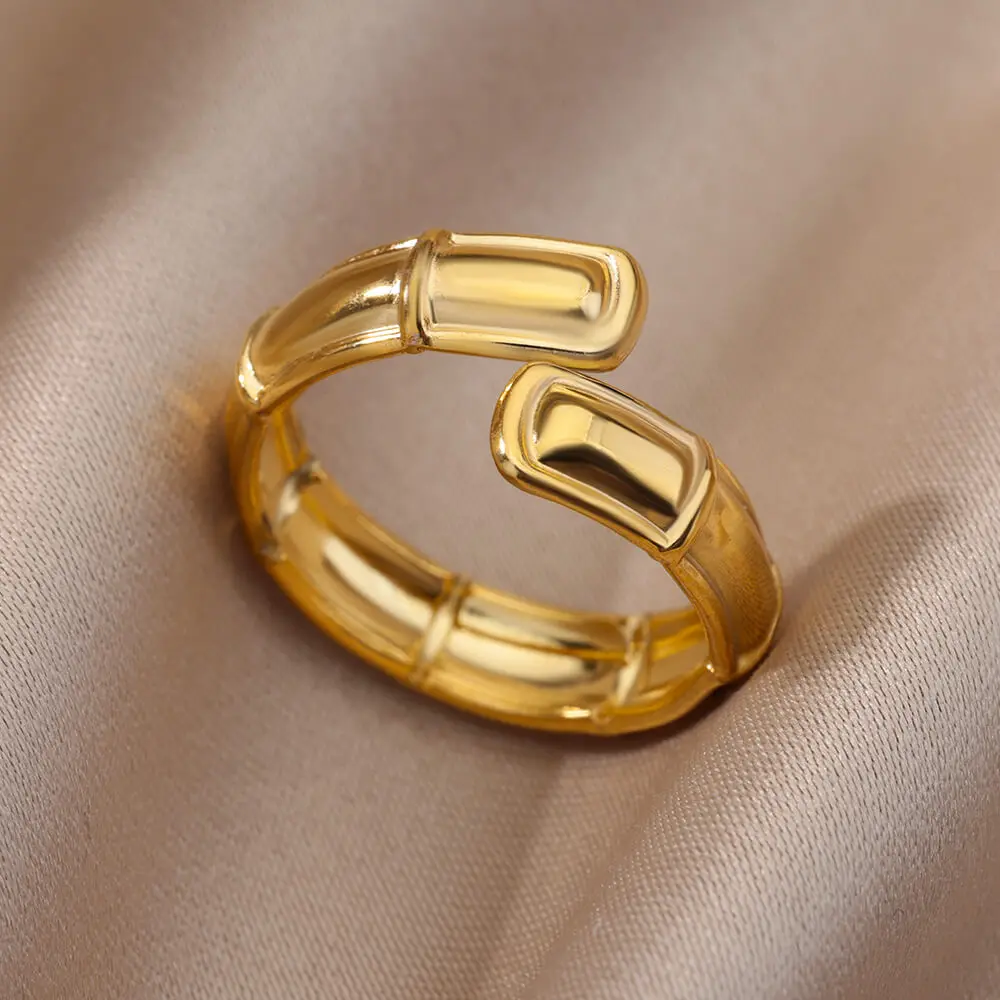 Details: These stainless steel gold-colored open rings are a modern twist on classic elegance. Their open design speaks to the sense of freedom and adaptability, while the gold hue adds a touch of timeless luxury. Each ring, with its sleek and minimalist form, is a statement of sophistication that celebrates the beauty of simplicity. Whether worn alone for a subtle shine or paired with other pieces for a layered look, these rings are versatile treasures that complement any style.