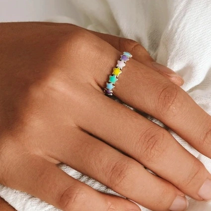 Just super! Excellent quality, I hope it does not darken. Very delicate colors, as in the picture, made neatly. Delivery is fast, the size has chosen perfectly, focusing on the size table of the store. Packed all units in individual bags, all these are in a gift box and in a bag with pupsticks. Took with earrings for the younger daughter, a set of more than satisfied! I think I'll order more if it doesn't get dark after a while. As a gift, the seller put a ring of the same size as the one ordered. Very nice, thank you!