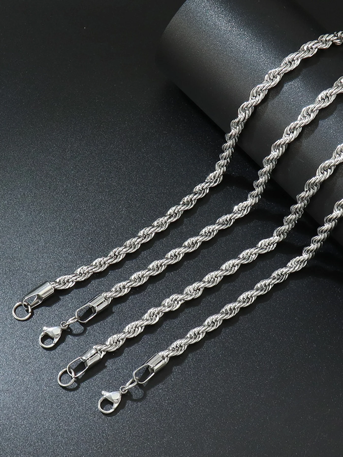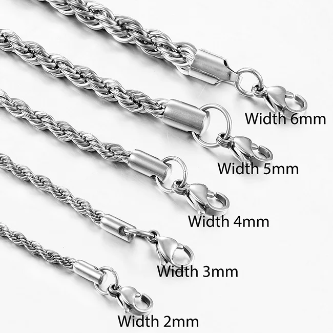 Details: Thick twisted rope braided chain necklace for men. Have your pick on the color and thickness of your preferences. This chain is fashionable and suitable for daily wear.