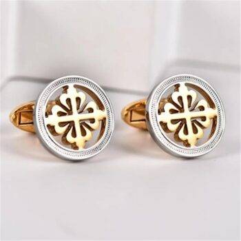 18K Gold Color Four-Leaf Clover Round Cuff Links Cufflinks