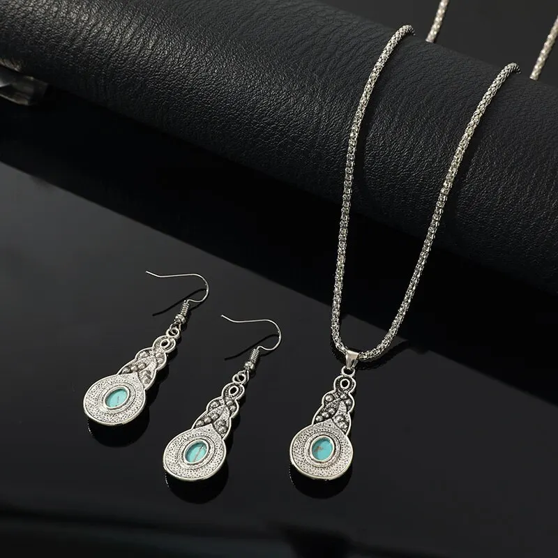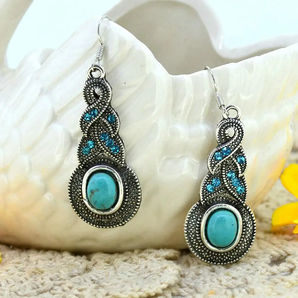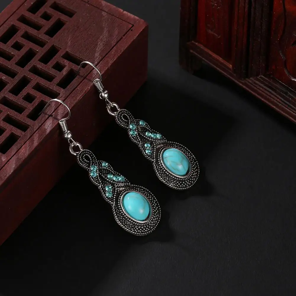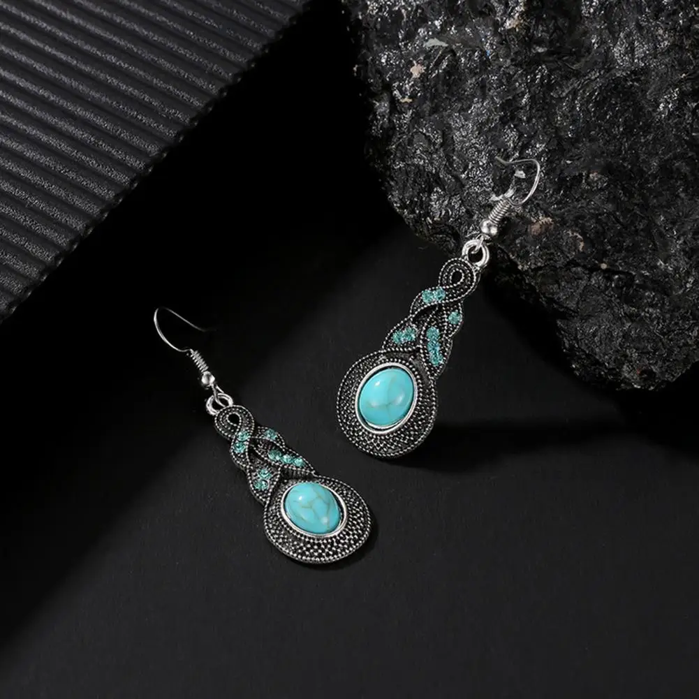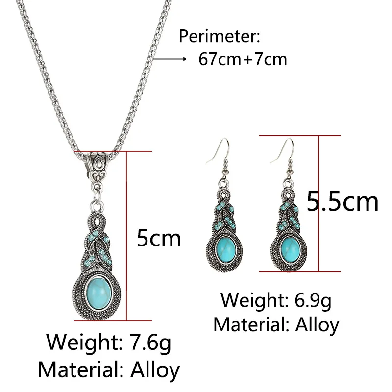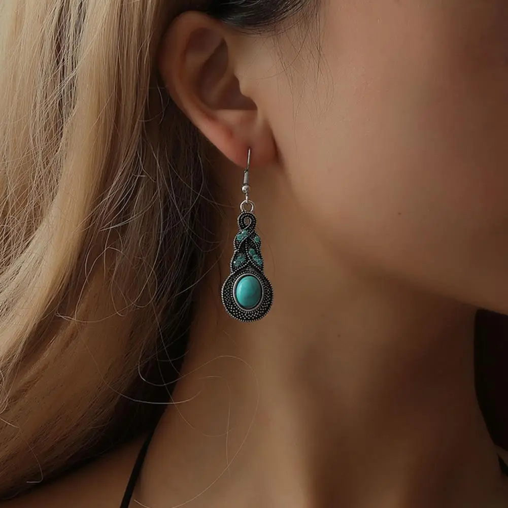 Details: Embrace the spirit of Bohemian elegance with this Turquoise Waterdrop Pendant Earrings. This captivating set features a pair of earrings with a 5 cm turquoise waterdrop pendant, adorned with intricate designs that evoke a sense of wanderlust and adventure. The vibrant turquoise color adds a touch of natural beauty, making these earrings perfect for any free-spirited fashionista. Whether dressing up for a festival or adding a boho-chic touch to your everyday look, this set is sure to turn heads.