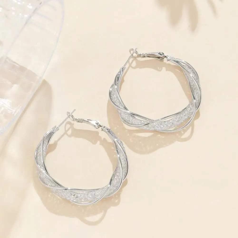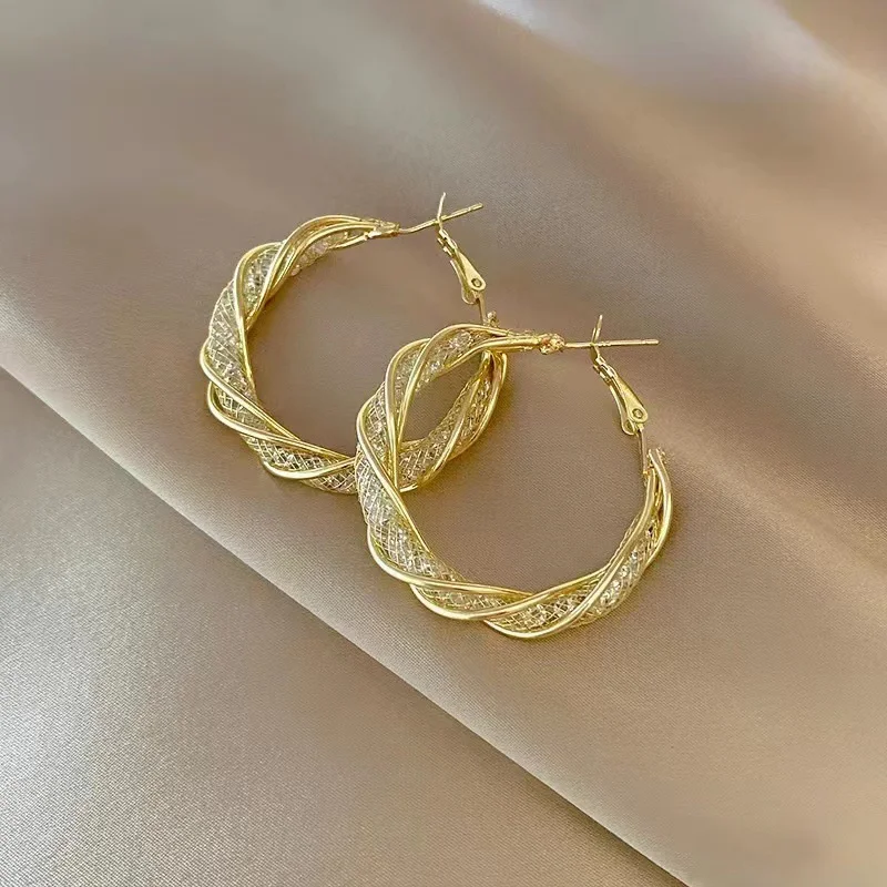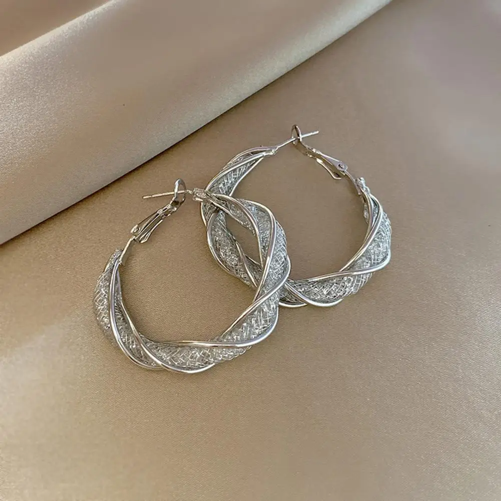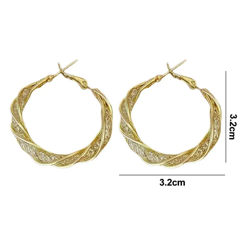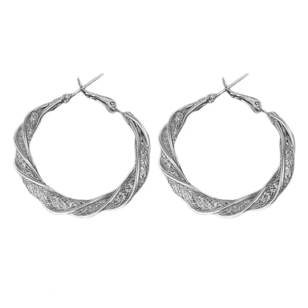 Details: Discover the perfect blend of classic and contemporary with these Twisted Mesh Hoop Earrings. The unique twisted design and intricate mesh pattern intertwined with smooth metal create a captivating texture, making these hoops a versatile accessory for casual and formal occasions. Available in gold and silver tones, these medium-sized hoops feature a secure latch-back closure, ensuring they stay comfortably in place all day. They are ideal for those who appreciate fine craftsmanship and contemporary style.
