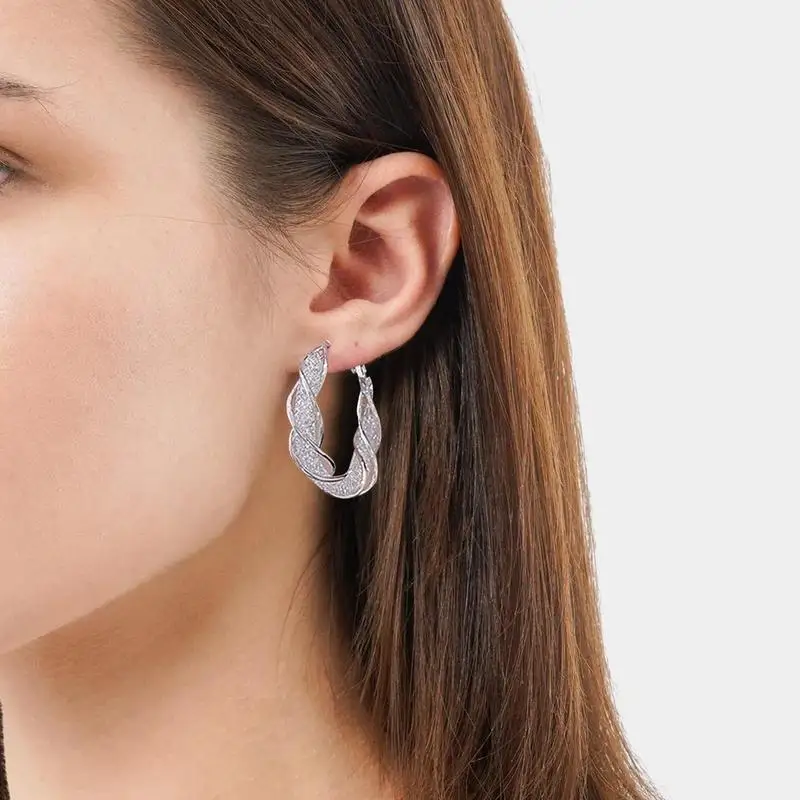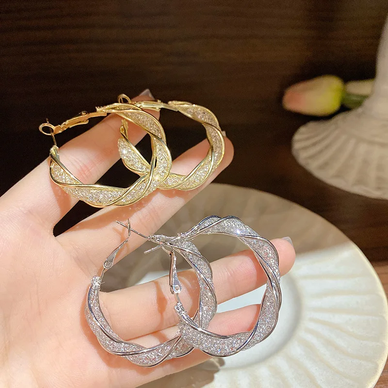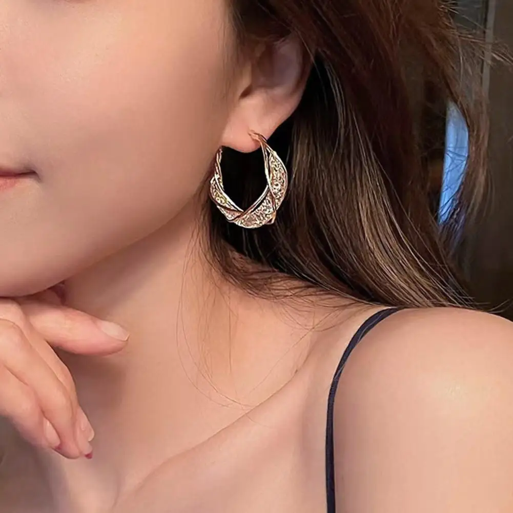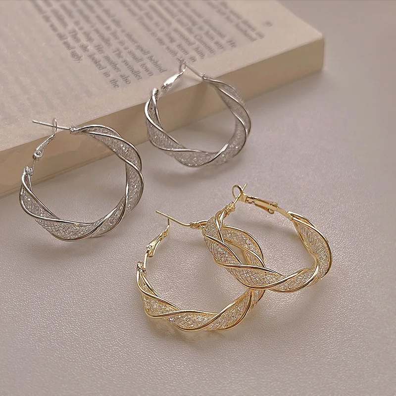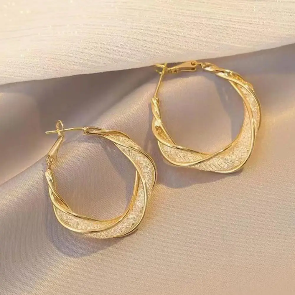 Details: Discover the perfect blend of classic and contemporary with these Twisted Mesh Hoop Earrings. The unique twisted design and intricate mesh pattern intertwined with smooth metal create a captivating texture, making these hoops a versatile accessory for casual and formal occasions. Available in gold and silver tones, these medium-sized hoops feature a secure latch-back closure, ensuring they stay comfortably in place all day. They are ideal for those who appreciate fine craftsmanship and contemporary style.
