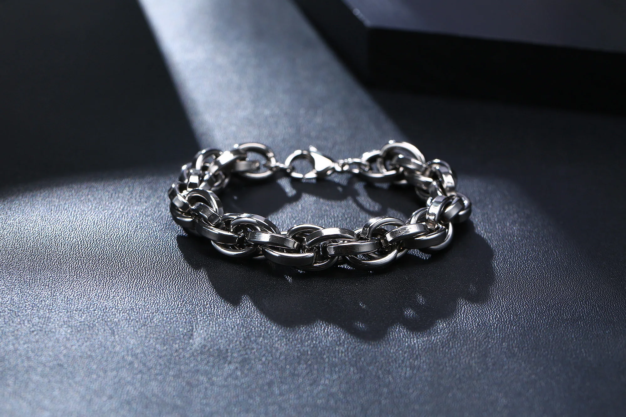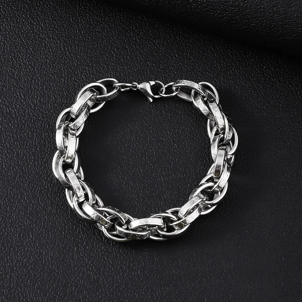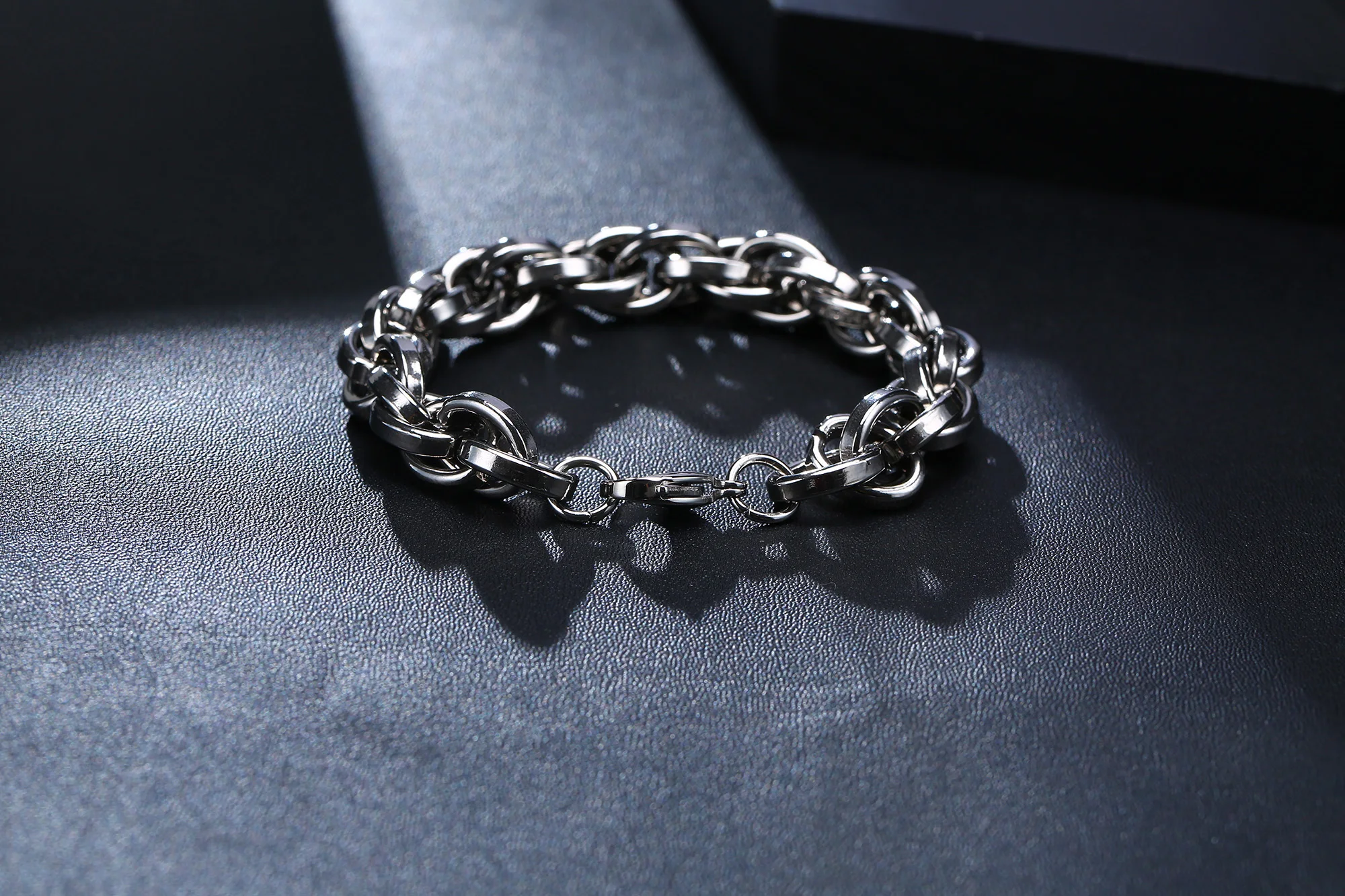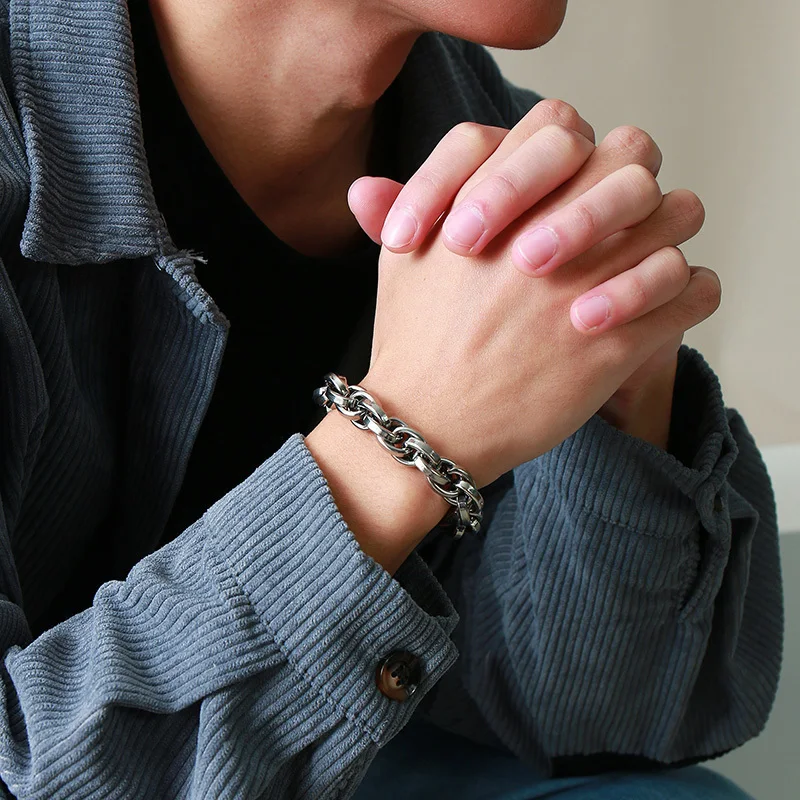 Details: This solid and weighty bracelet is crafted with inter-connected oval-shaped link chains. Made of high-quality stainless steel, which is durable, longer-lasting, durable, lead-free, nickel-free, and eco-friendly. This bracelet is exquisite-looking yet still exuding manly vibes.