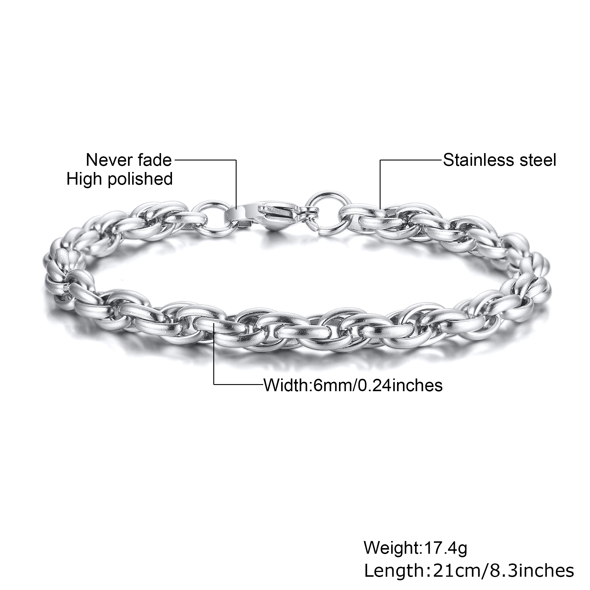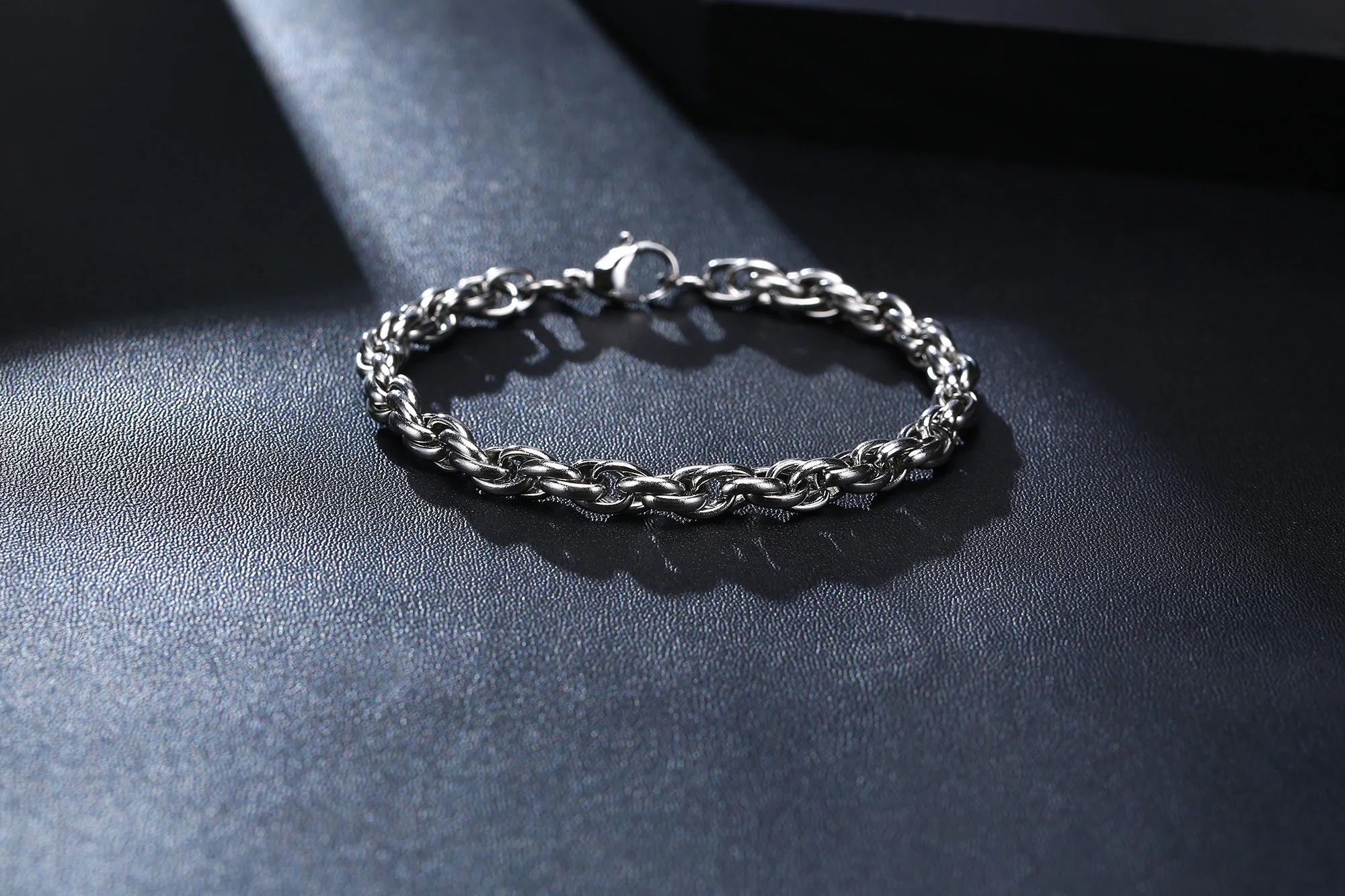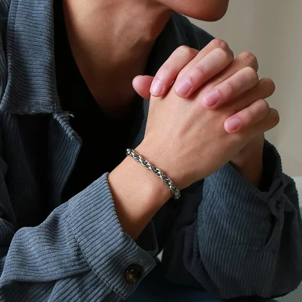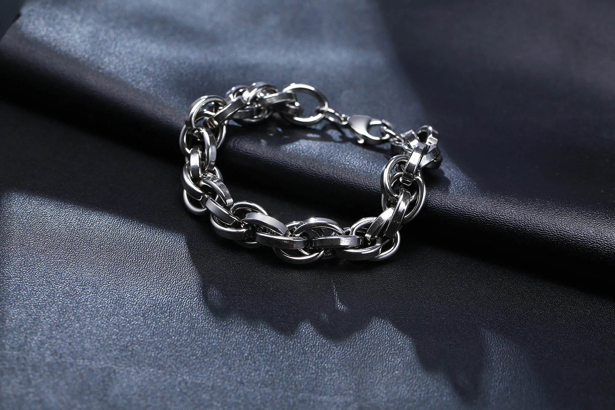 Details: This solid and weighty bracelet is crafted with inter-connected oval-shaped link chains. Made of high-quality stainless steel, which is durable, longer-lasting, durable, lead-free, nickel-free, and eco-friendly. This bracelet is exquisite-looking yet still exuding manly vibes.