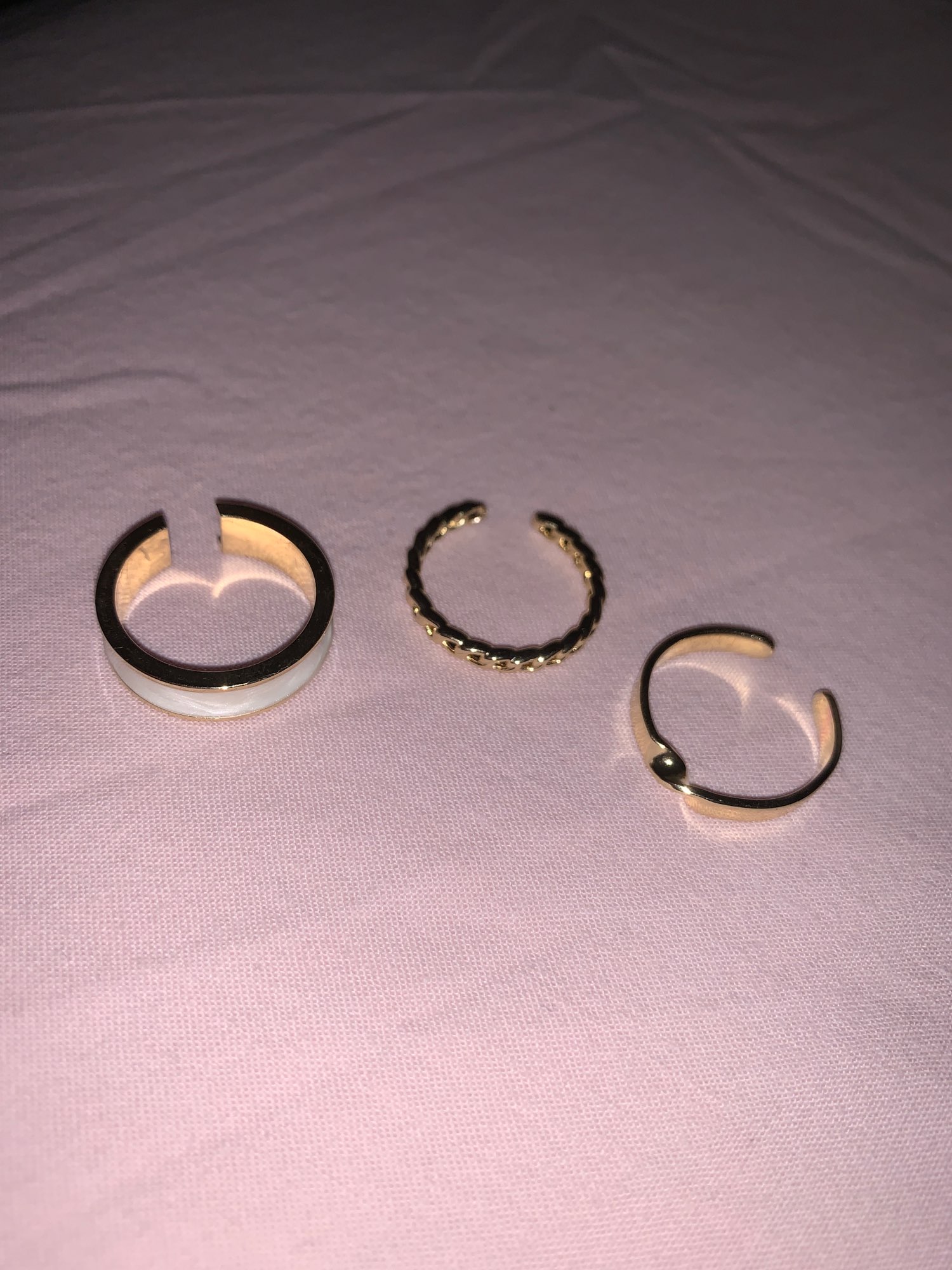 Braided ring is very cool quality, looks like silver, two others look cheap