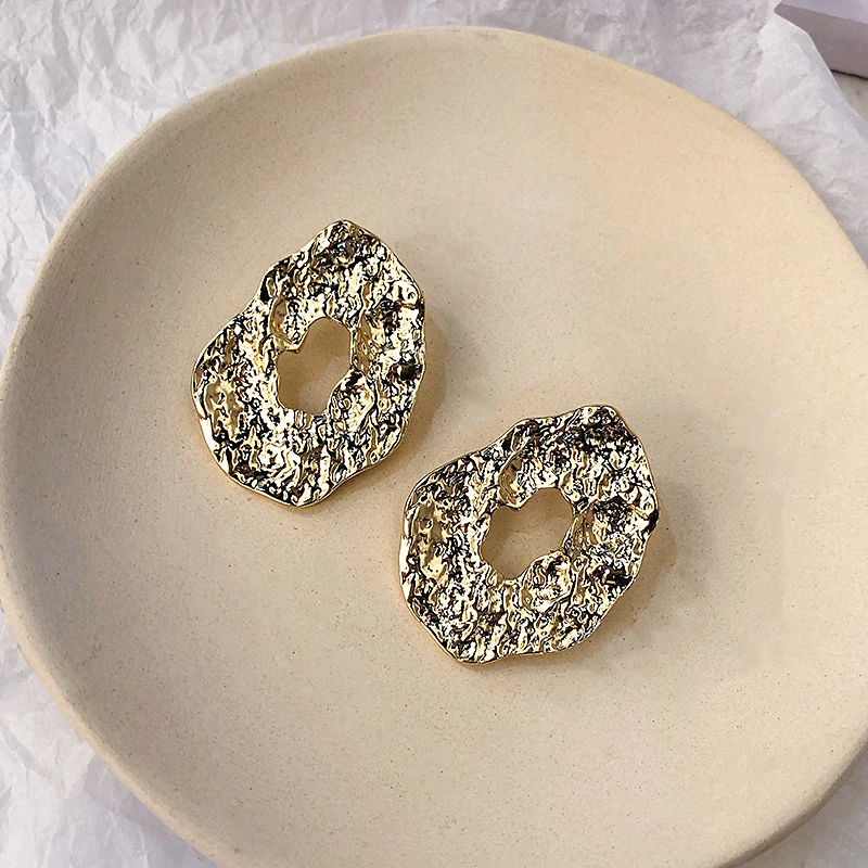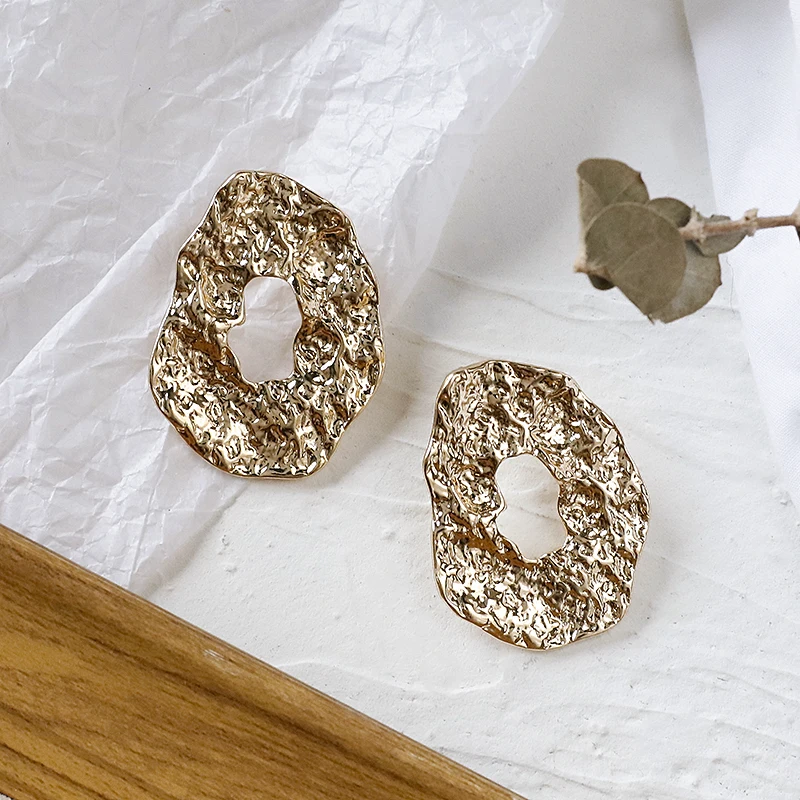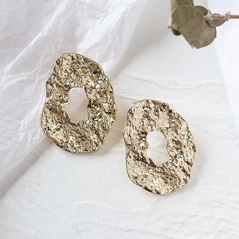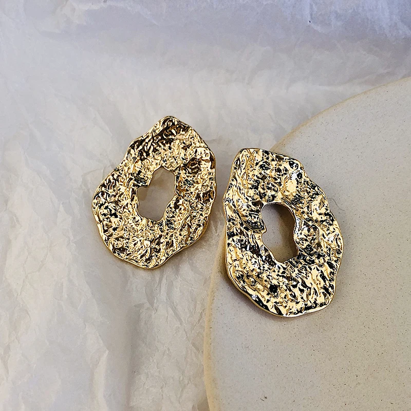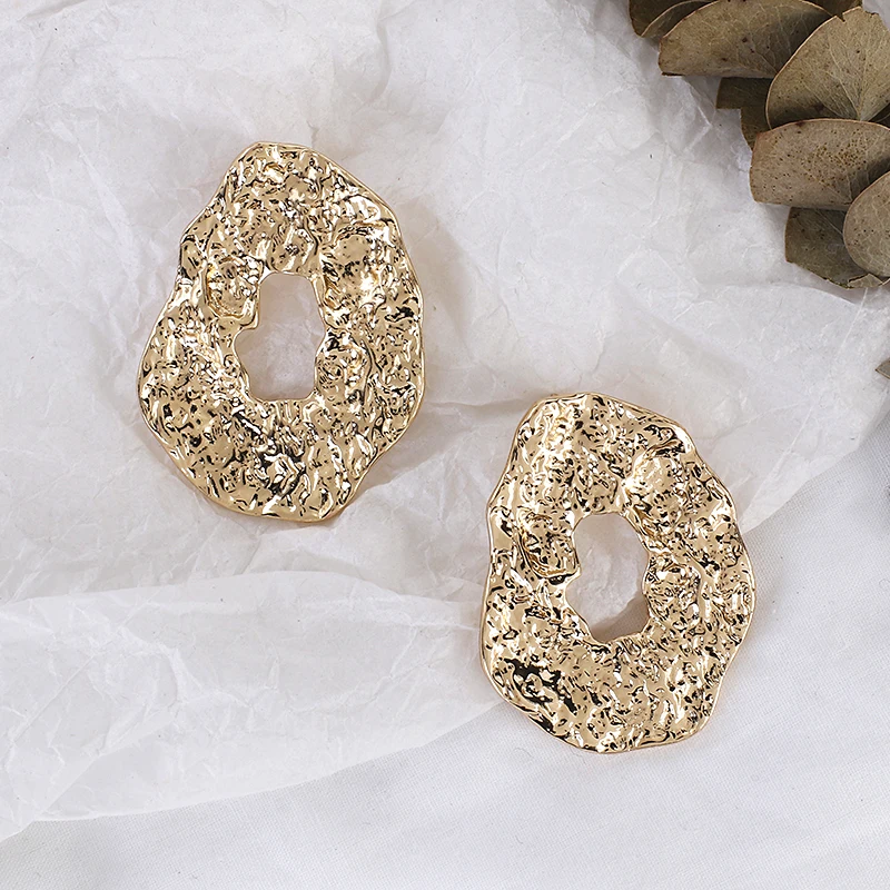 Unique Geometric Irregular Crumpled Drop Earrings for Women