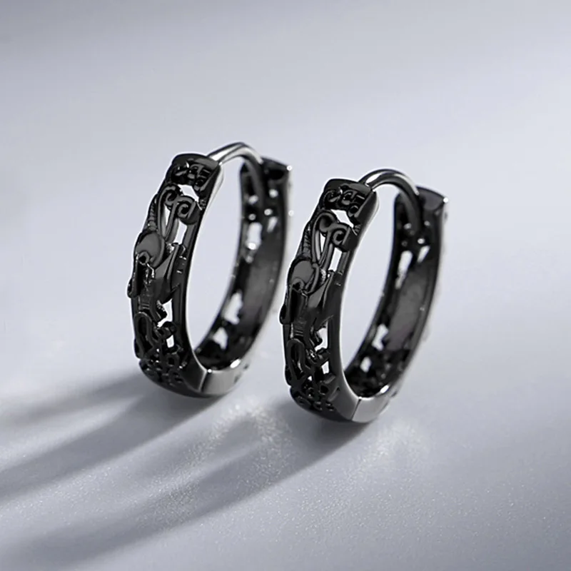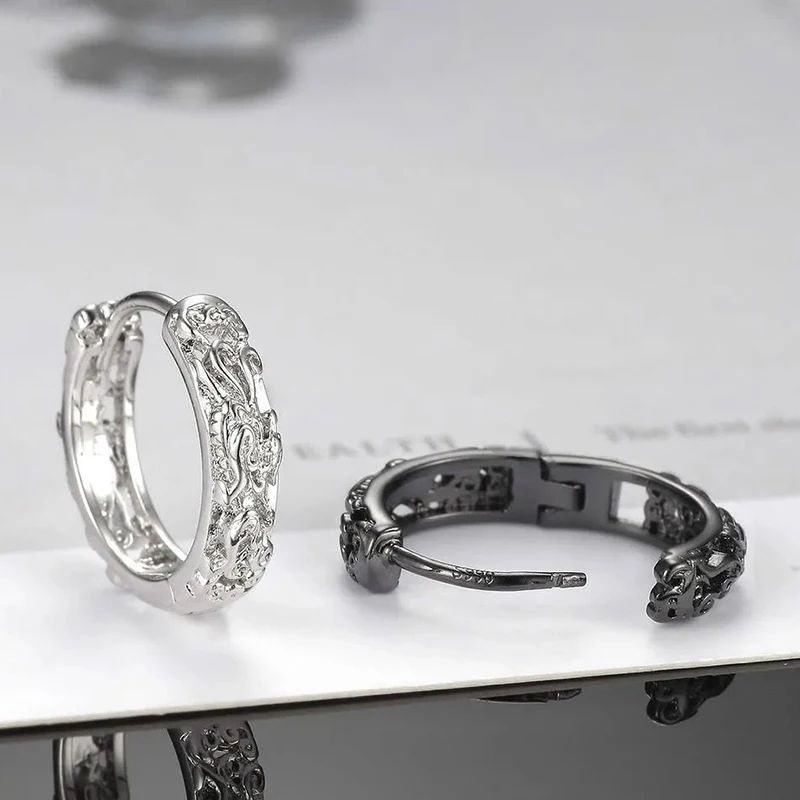 Unisex Ornate Floral Scrollwork Hoop Earrings