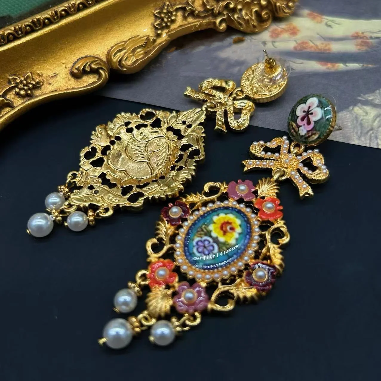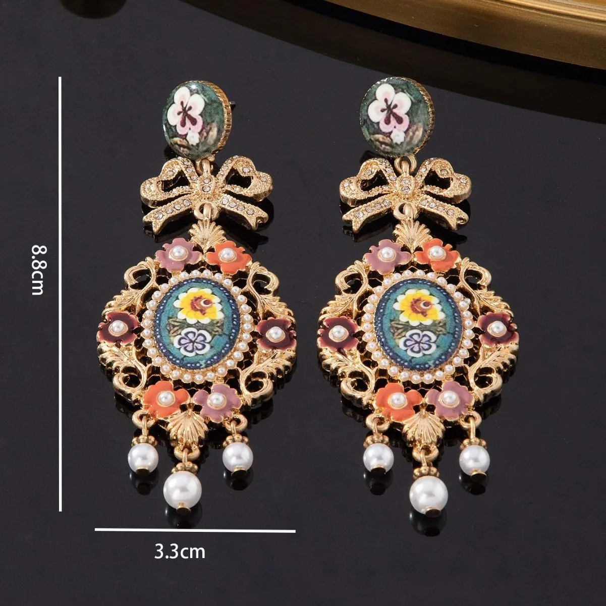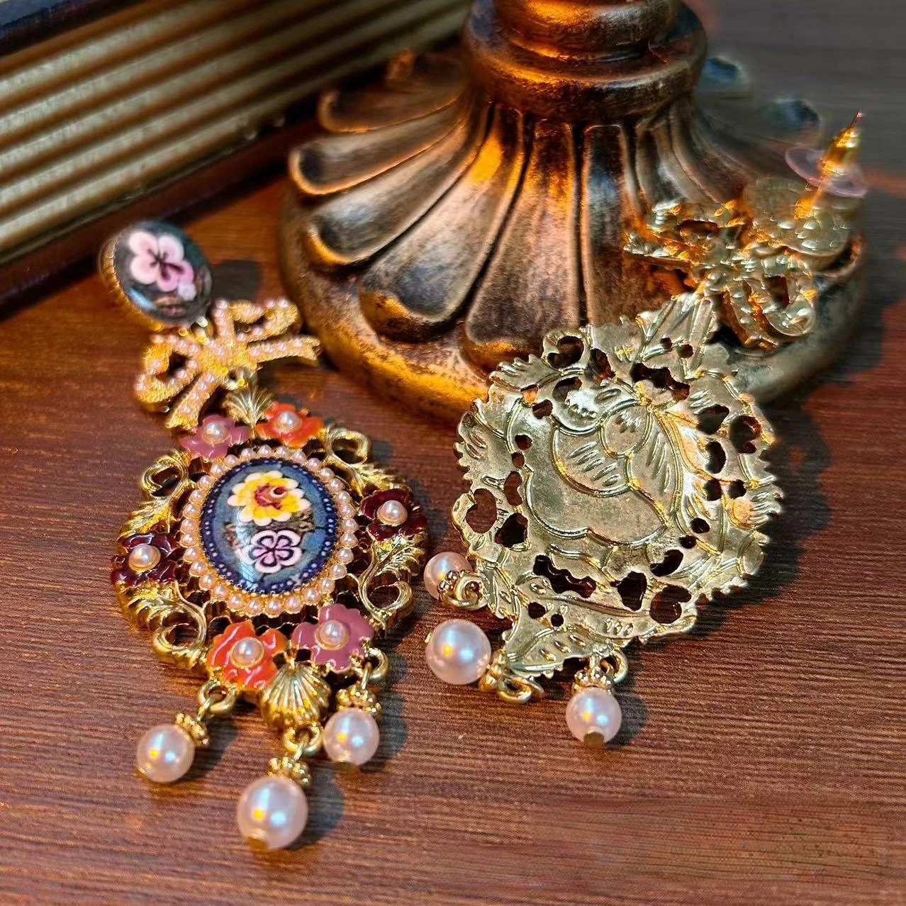 Very nice earrings of very good quality are large size do not weigh and I loved the design is totally vintage and beautiful
