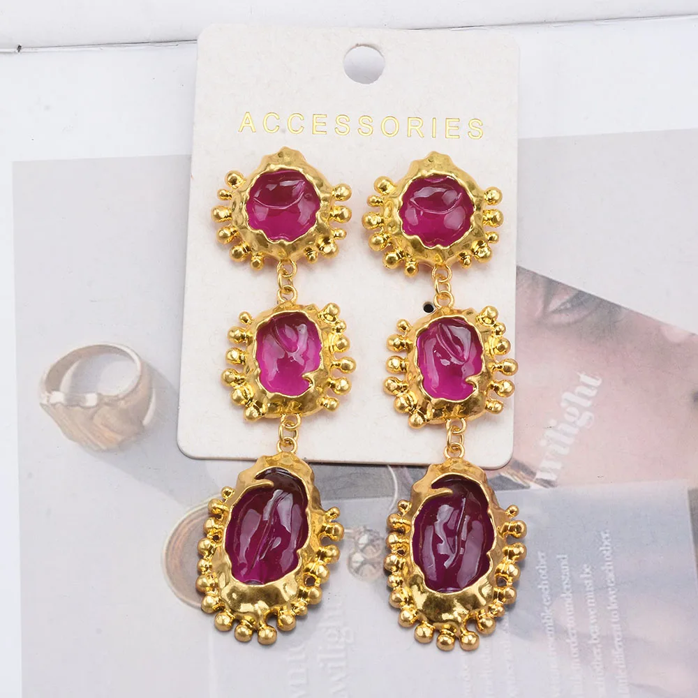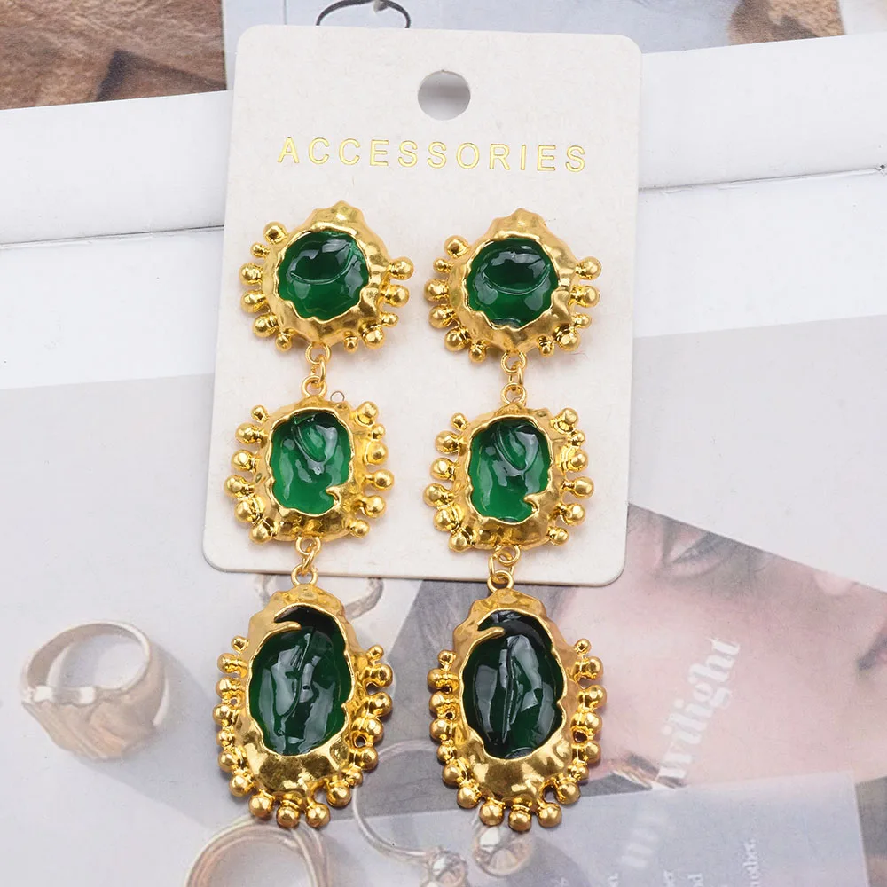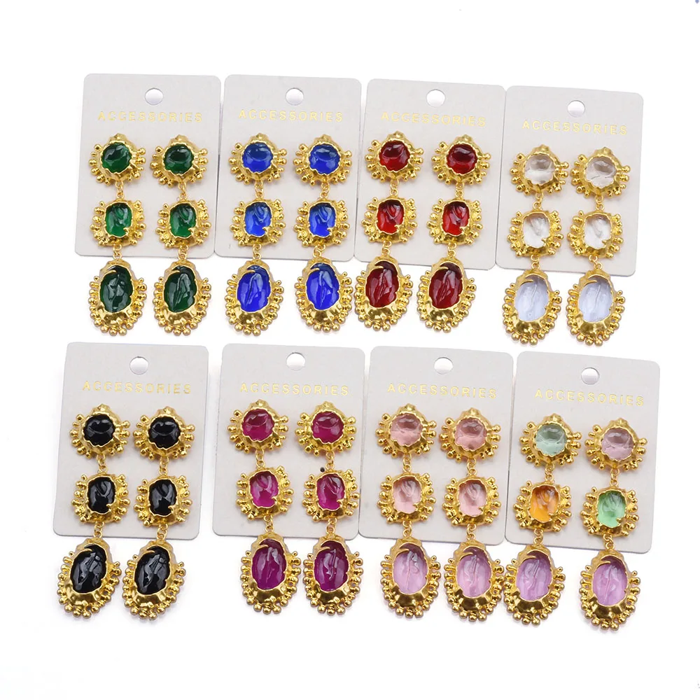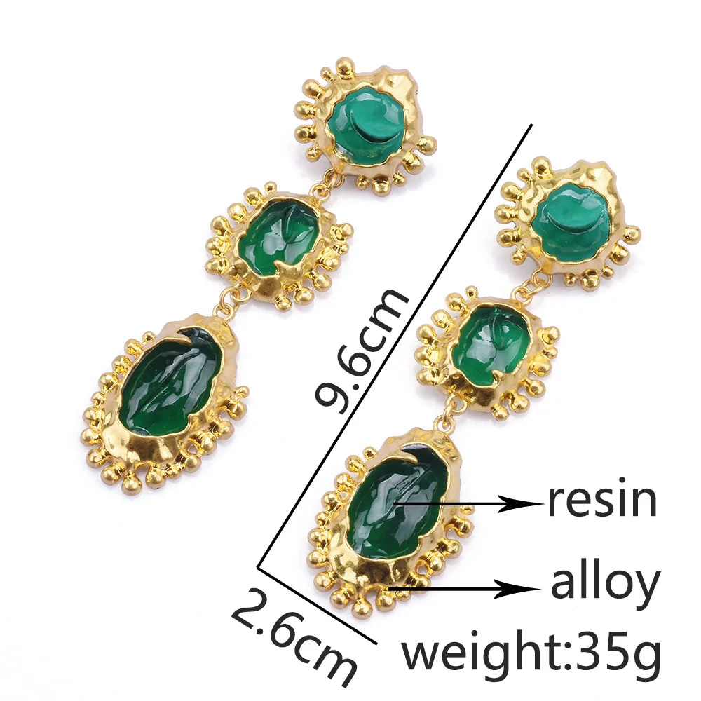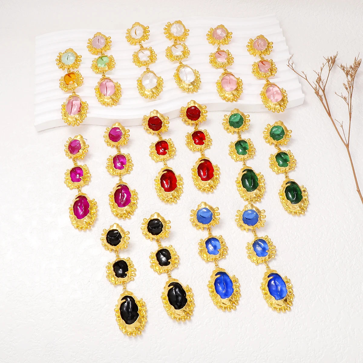 Details: Embrace the elegance of bohemian style with these Boho Ethnic Baroque Long Dangle Earrings. These exquisite earrings feature vibrant, oval-shaped resin set in intricate gold-toned frames, exuding a luxurious and vintage charm. Available in a variety of colors, including pastel shades like mint green, light yellow, and soft pink, as well as bold hues such as deep red, emerald green, royal blue, and jet black, these earrings are perfect for adding a touch of sophistication and glamour to any outfit. Ideal for special occasions or to elevate everyday wear, these earrings are a must-have for those who appreciate unique and eye-catching accessories.
