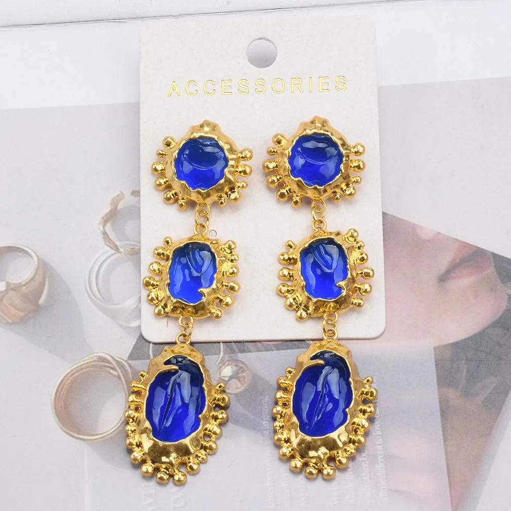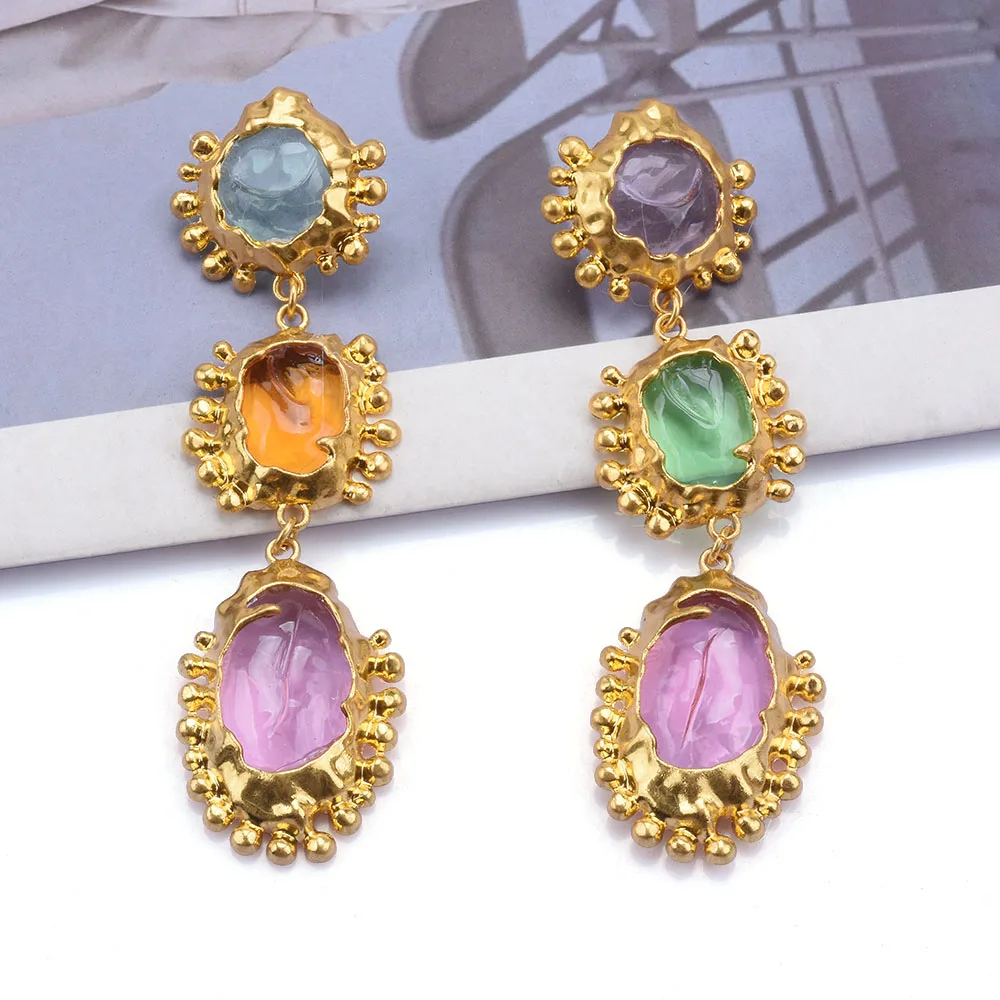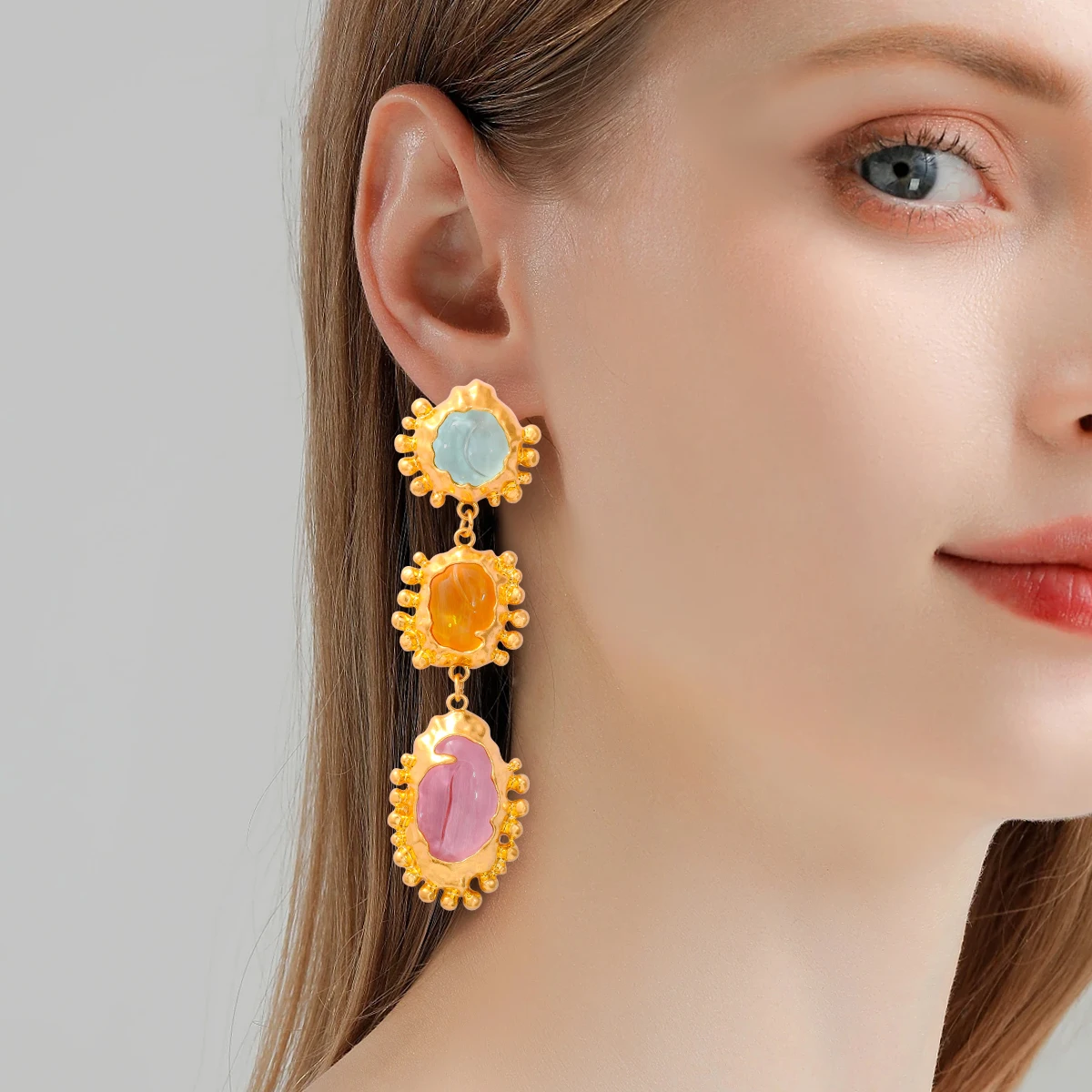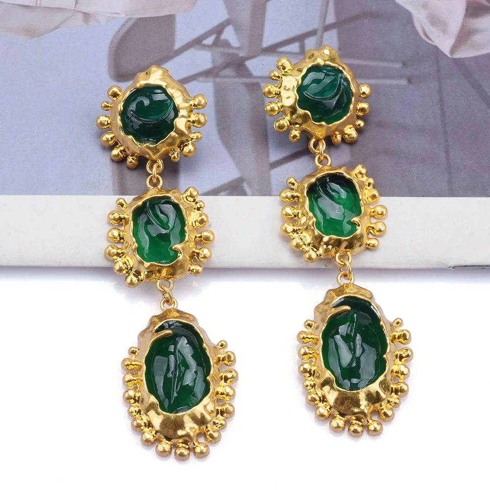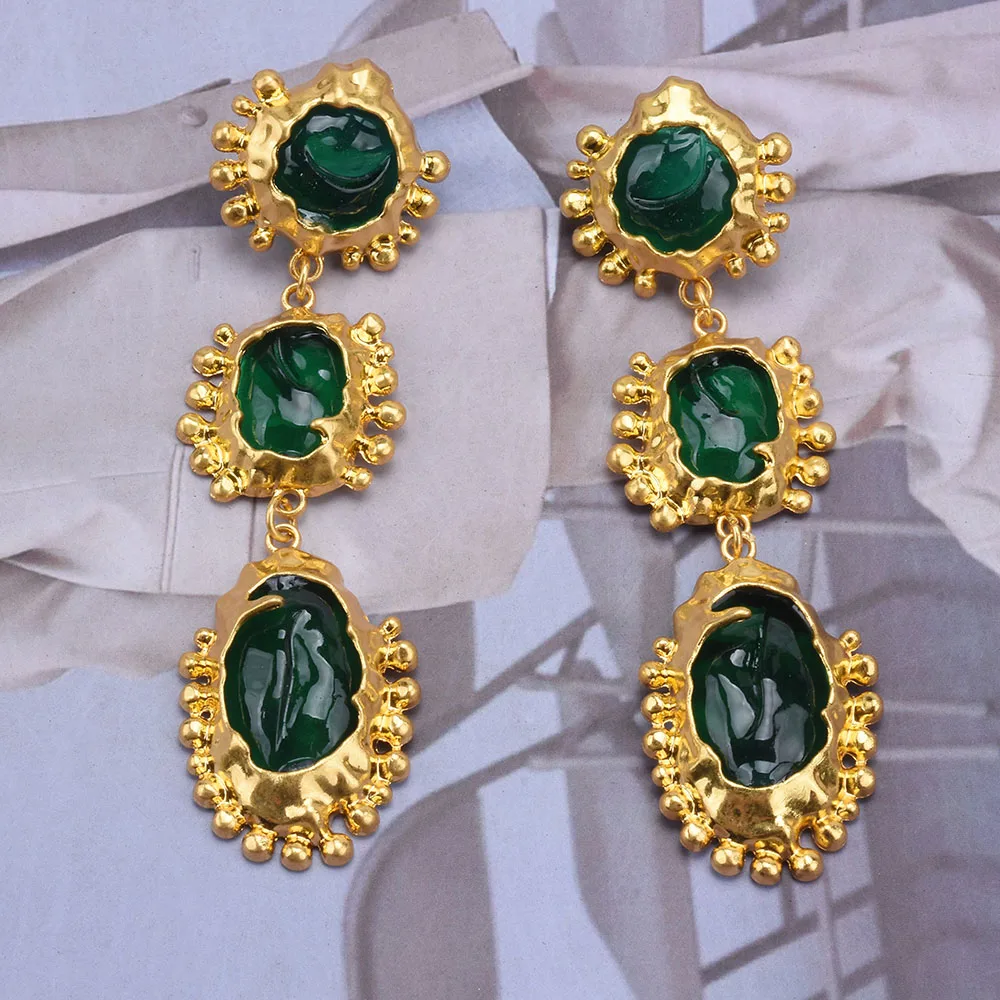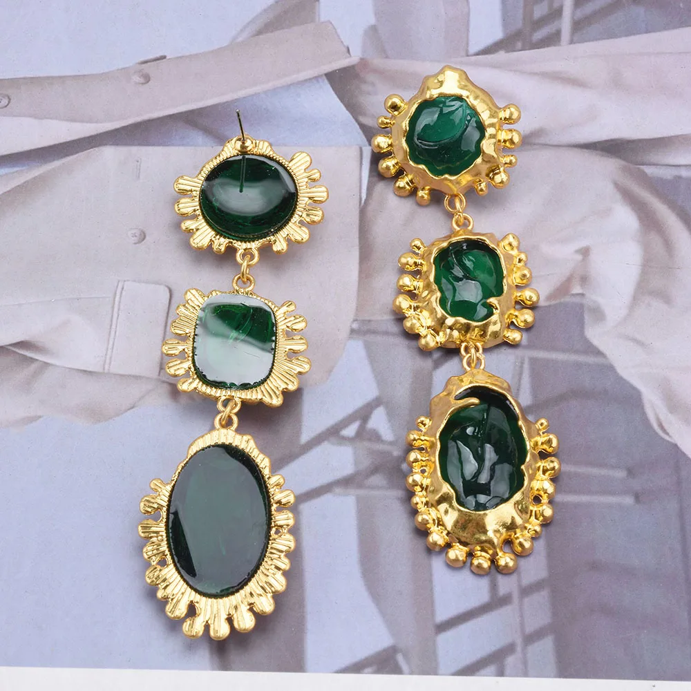 Details: Embrace the elegance of bohemian style with these Boho Ethnic Baroque Long Dangle Earrings. These exquisite earrings feature vibrant, oval-shaped resin set in intricate gold-toned frames, exuding a luxurious and vintage charm. Available in a variety of colors, including pastel shades like mint green, light yellow, and soft pink, as well as bold hues such as deep red, emerald green, royal blue, and jet black, these earrings are perfect for adding a touch of sophistication and glamour to any outfit. Ideal for special occasions or to elevate everyday wear, these earrings are a must-have for those who appreciate unique and eye-catching accessories.