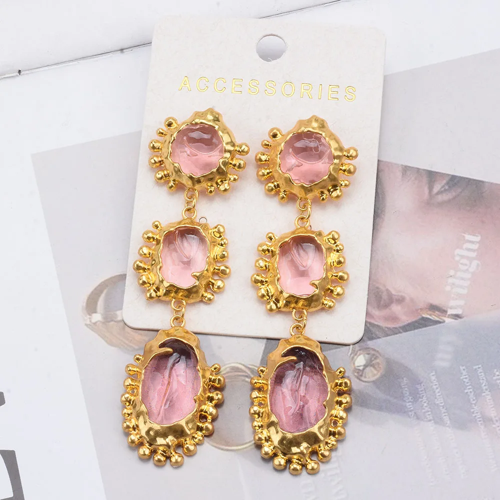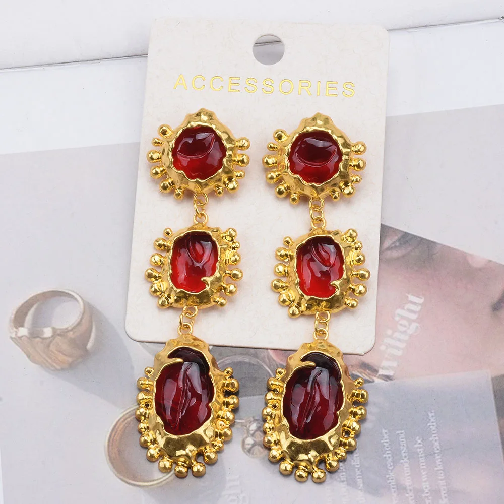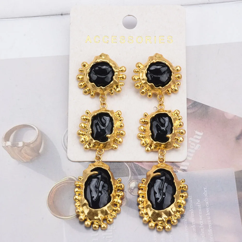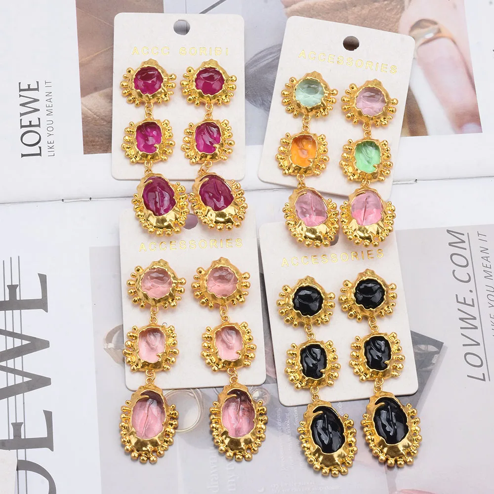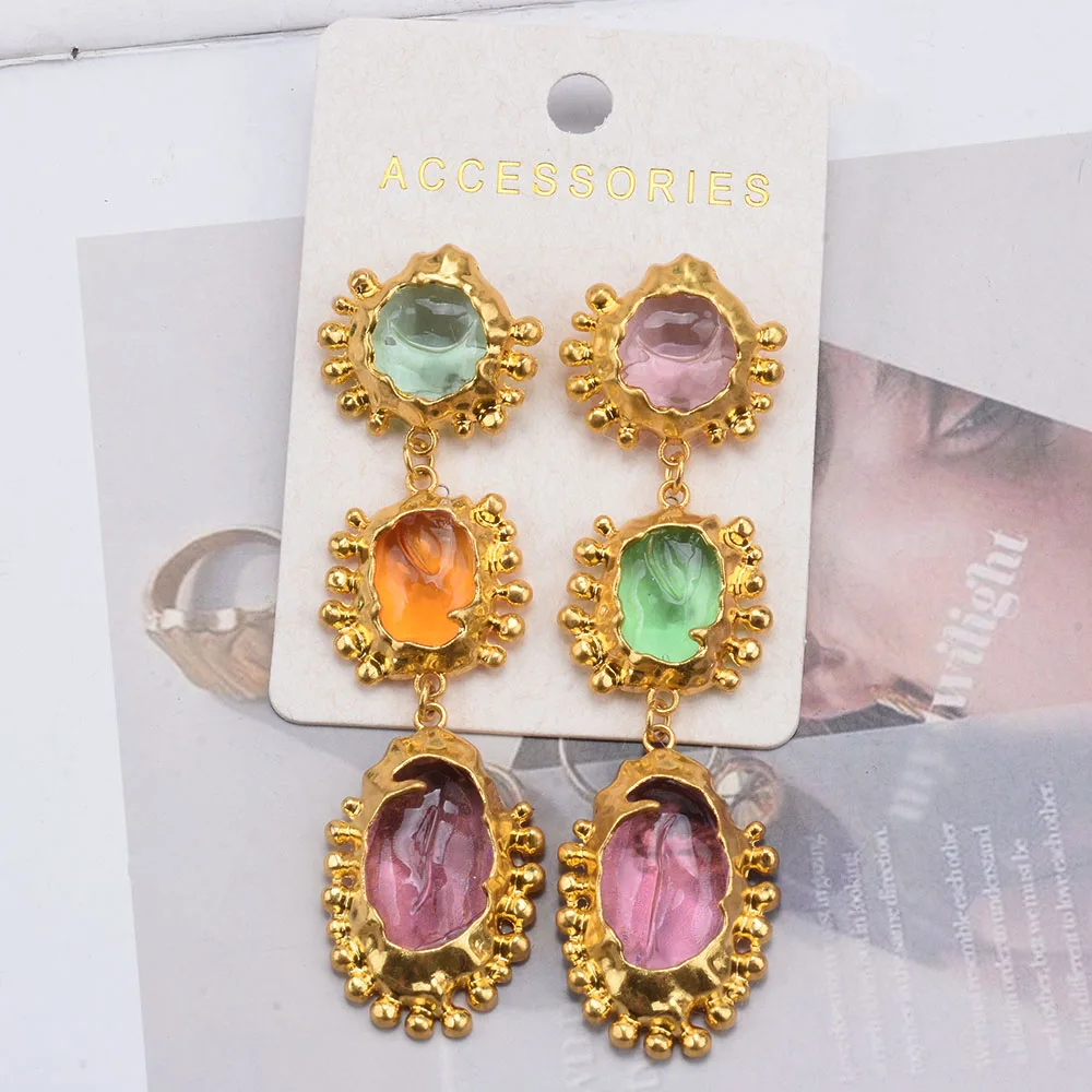 Details: Embrace the elegance of bohemian style with these Boho Ethnic Baroque Long Dangle Earrings. These exquisite earrings feature vibrant, oval-shaped resin set in intricate gold-toned frames, exuding a luxurious and vintage charm. Available in a variety of colors, including pastel shades like mint green, light yellow, and soft pink, as well as bold hues such as deep red, emerald green, royal blue, and jet black, these earrings are perfect for adding a touch of sophistication and glamour to any outfit. Ideal for special occasions or to elevate everyday wear, these earrings are a must-have for those who appreciate unique and eye-catching accessories.