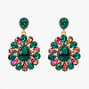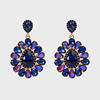 Details: Elevate your elegance with these Waterdrop Decor Glass Dangle Earrings, available in mesmerizing blue hue, soft pink, or emerald green hue. These exquisite earrings feature a large, teardrop-shaped glass stone at the center, surrounded by a halo of smaller, oval-shaped stones in shades of deep blue and iridescent purple, emerald green and iridescent pink, or soft pink hue. The stones are set in a luxurious gold-tone metal, adding a touch of sophistication and timeless beauty. Perfect for both casual and formal occasions, these earrings are a versatile accessory that complements any outfit. Embrace the blend of classic beauty and modern design with this captivating piece.