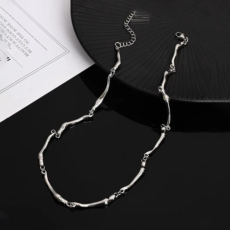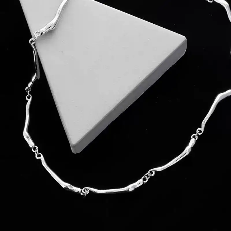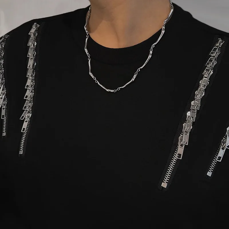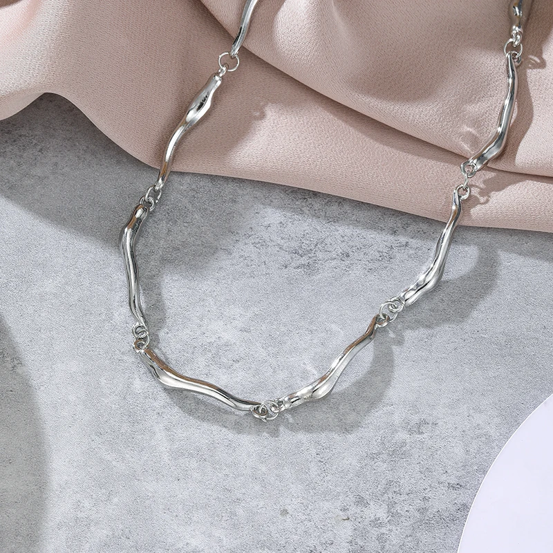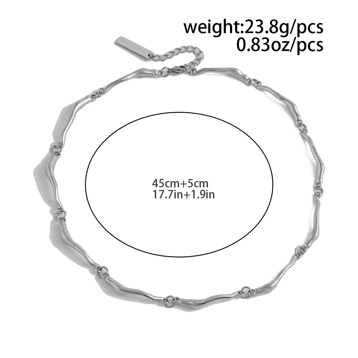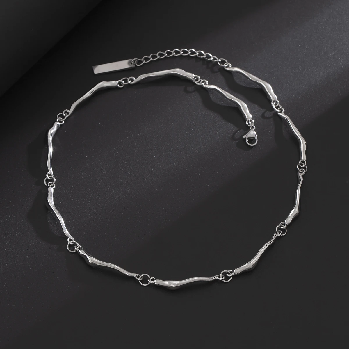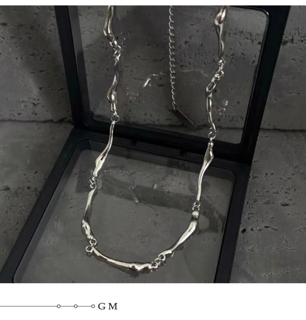 Details: Bold yet refined, the Wavy Warp Clavicle Chain Necklace is a striking piece designed for both men and women who appreciate artistry in everyday style. Crafted in polished alloy, its irregular, organically twisted links evoke the fluidity of waves and the raw beauty of natural forms. Each link connects seamlessly, creating a sculptural chain that rests elegantly along the collarbone. Its unisex design makes it versatile, pairing effortlessly with minimalist outfits for a modern edge or layered with other chains for a fashion-forward look. Lightweight yet substantial, it’s perfect for those who want to carry a touch of avant-garde sophistication wherever they go.