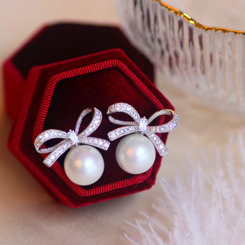 Cubic Zirconia Simulated Pearl Bowknot Stud Earrings