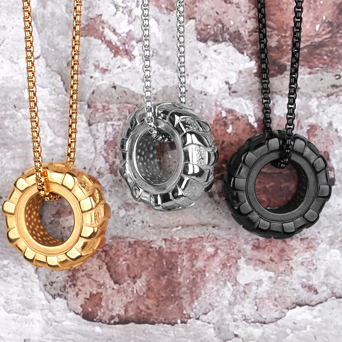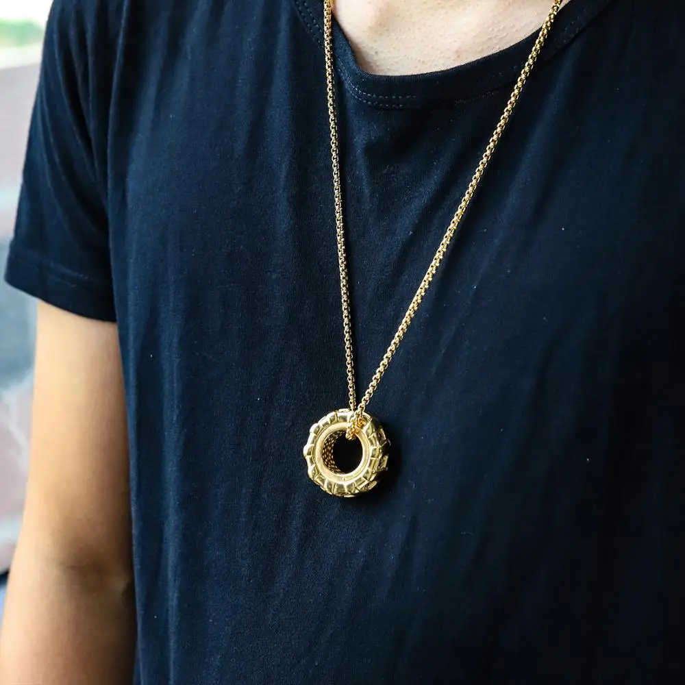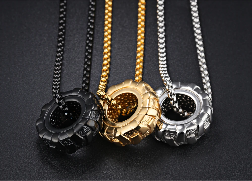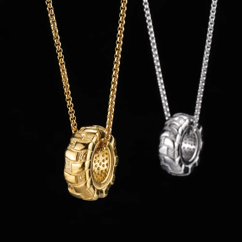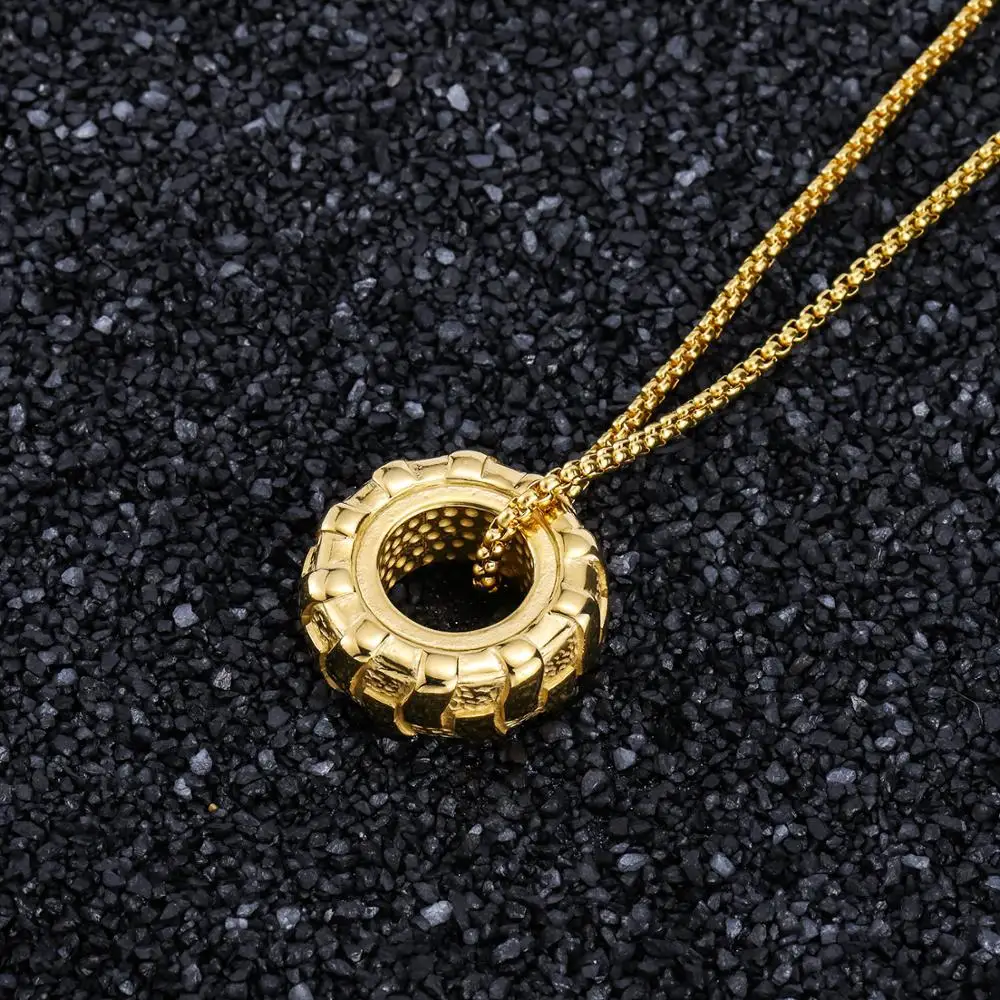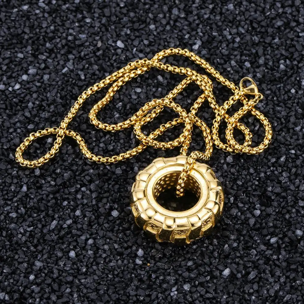 Details: Crafted from 316L stainless steel, this pendant mimics the rugged tread of a tire. The tire design symbolizes strength and endurance, while tire tread detail reflects determination and resilience. Perfect for fitness enthusiasts or anyone with an edgy style. Wear it to the gym or as a statement piece.