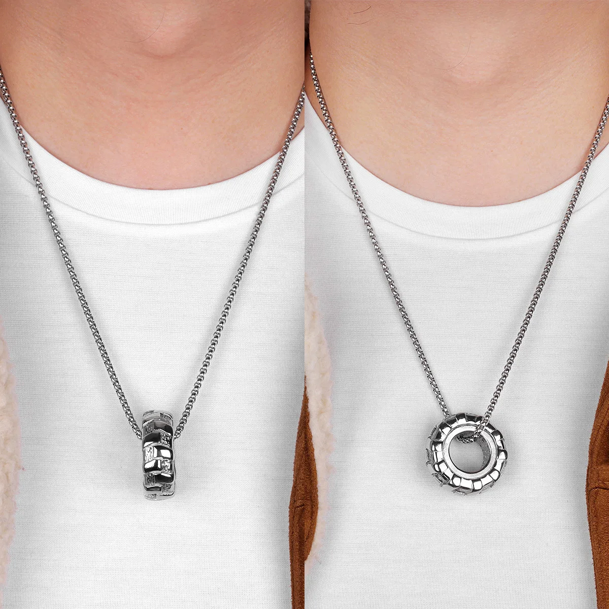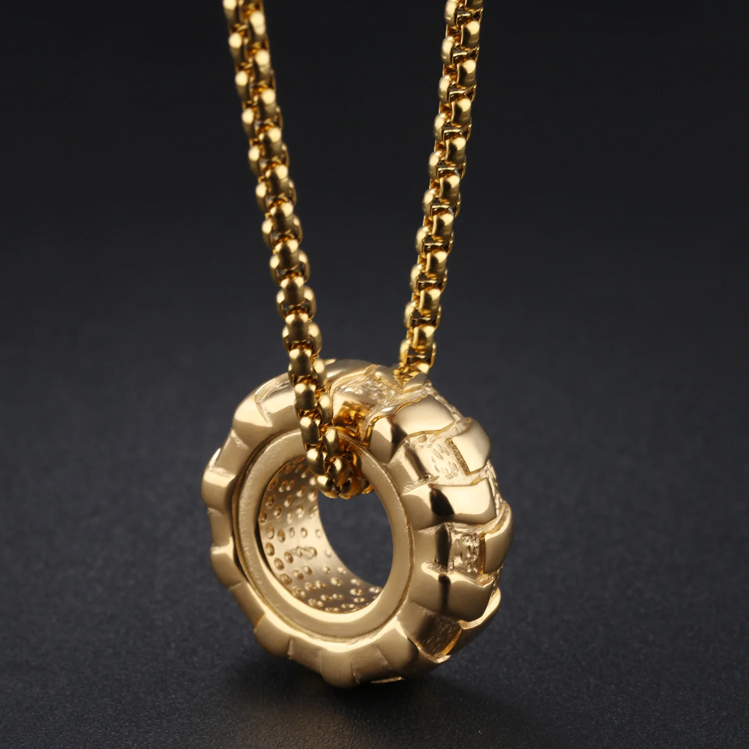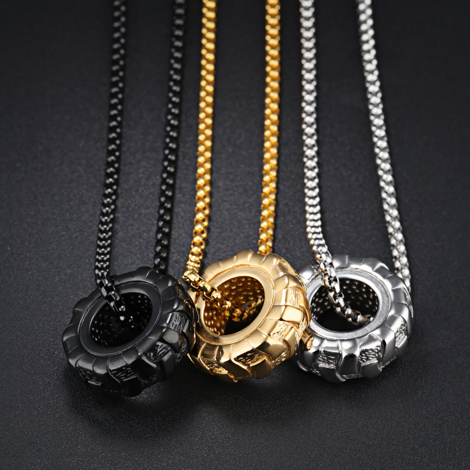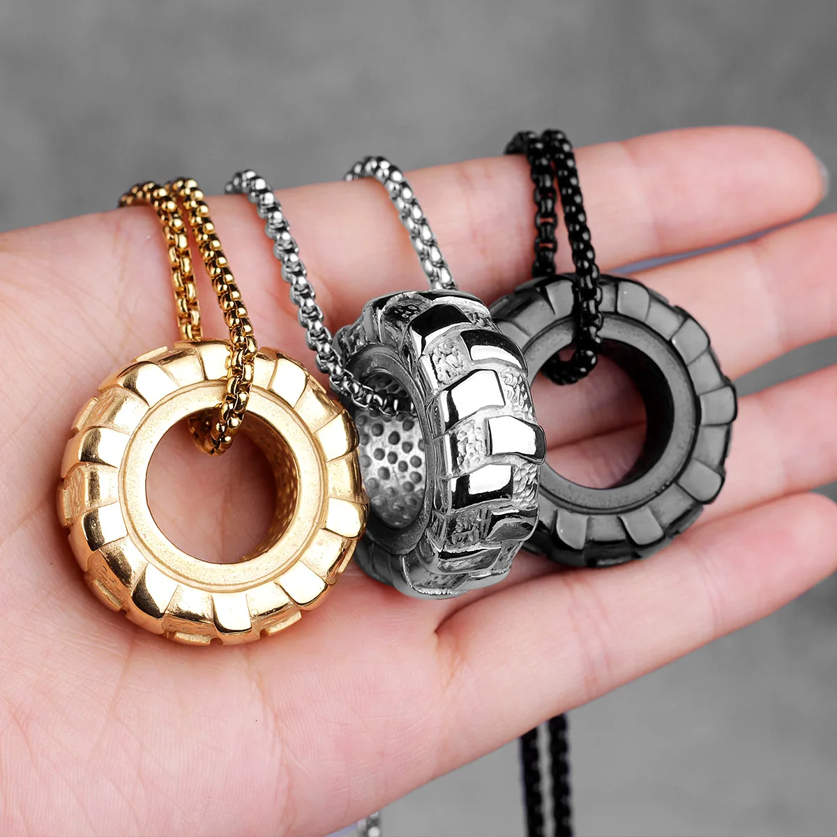 Details: Crafted from 316L stainless steel, this pendant mimics the rugged tread of a tire. The tire design symbolizes strength and endurance, while tire tread detail reflects determination and resilience. Perfect for fitness enthusiasts or anyone with an edgy style. Wear it to the gym or as a statement piece.