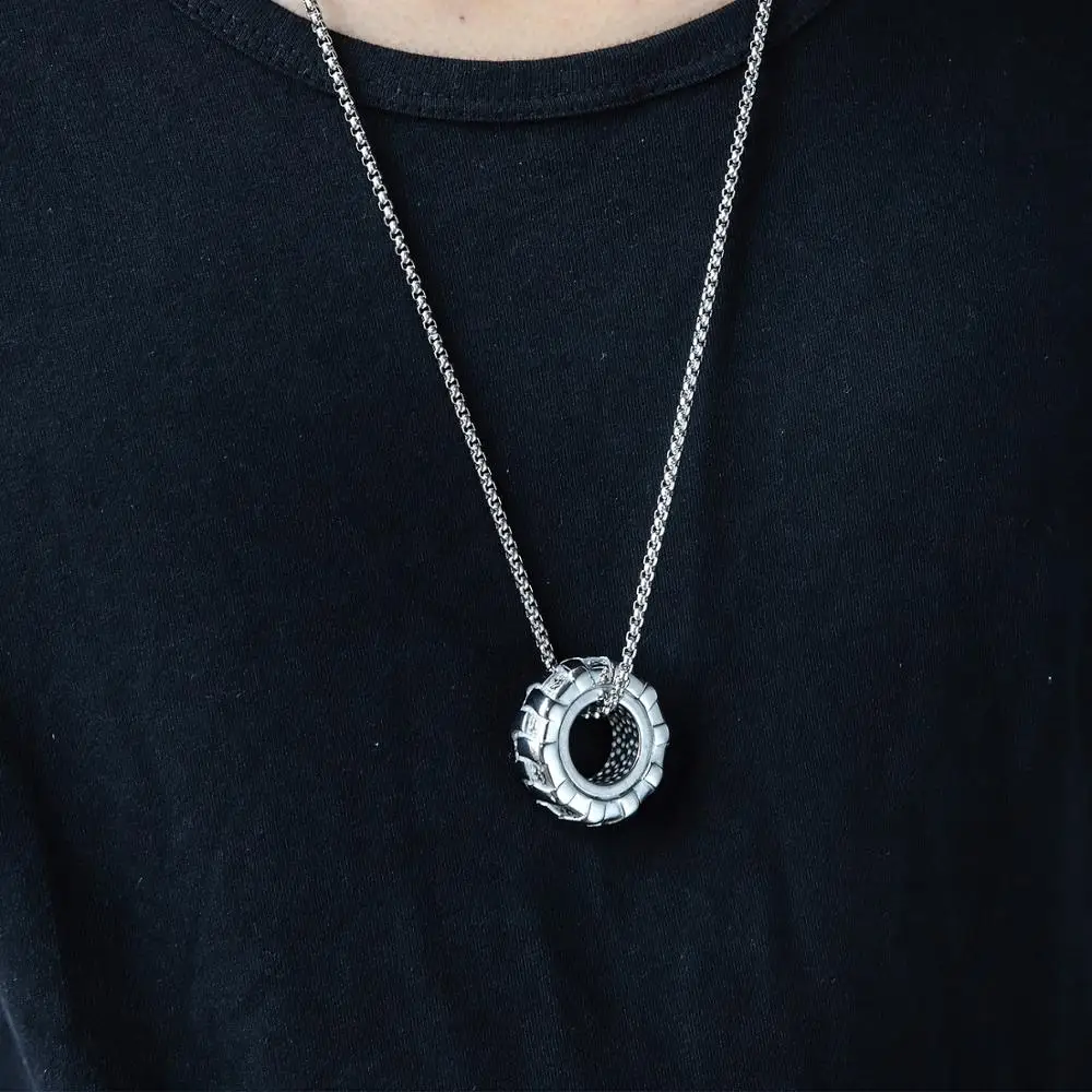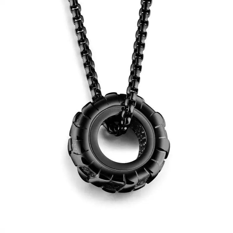 Wheel Tire Tyre Stainless Steel Fitness Gym Pendant Necklace