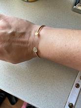 A pretty cute bracelet, quite minimalistic. Pebbles on the spot, not particularly sparkling. The size can be adjusted, by compression the bracelet itself-the metal is soft. But in this and minus, I think, if you constantly bend/bend can quickly break.