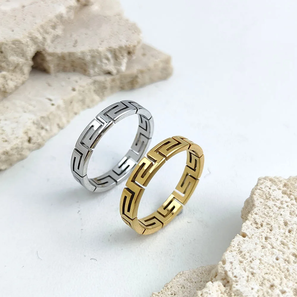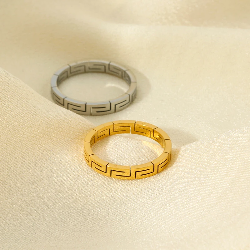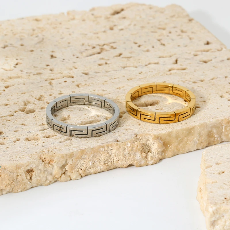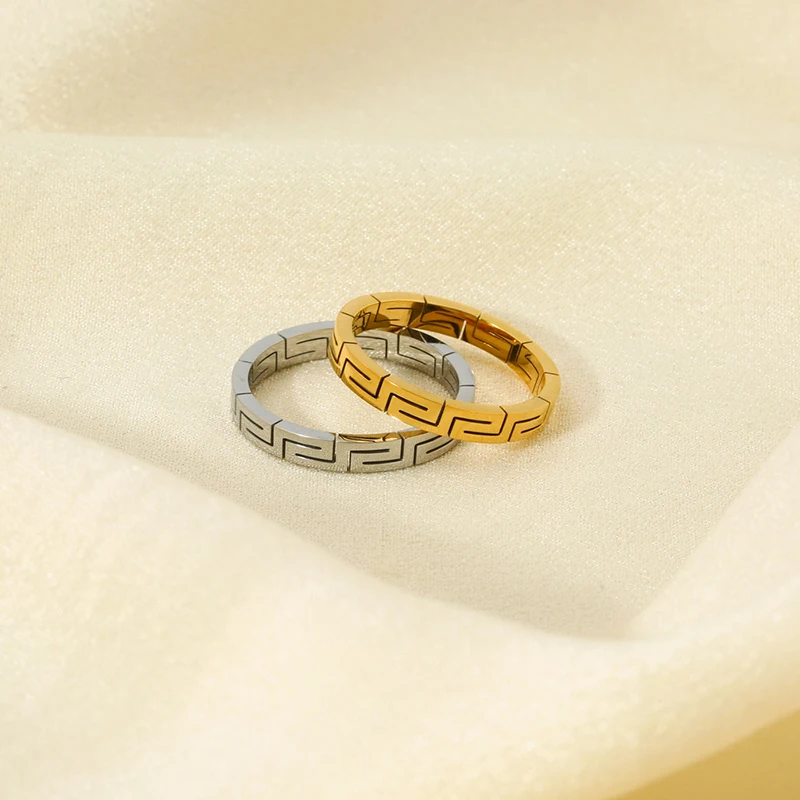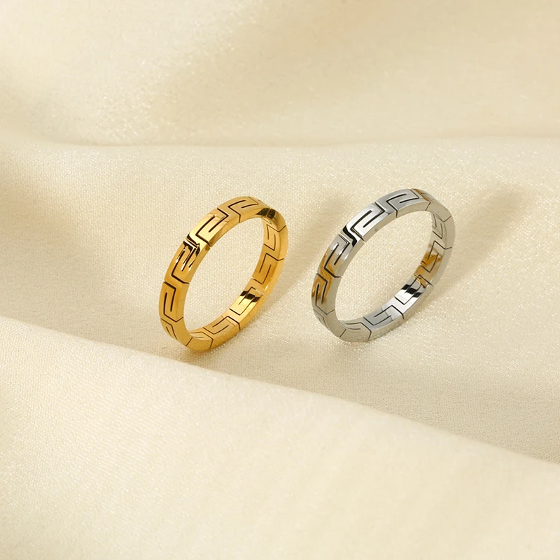 Details: Add a touch of modern elegance and elevate your style with this Z Zigzag Pattern Stainless Steel Ring, available in both luxurious gold and sleek silver tones. This bold piece features a unique zigzag pattern that wraps around the entire band, creating a visually captivating effect. The high-polish finish enhances the intricate design, making this ring perfect for both casual and formal occasions. Crafted from durable stainless steel, it offers lasting shine and resilience, ensuring it remains a staple in your jewelry collection for years to come. Whether worn alone or stacked, this ring is sure to make a statement.